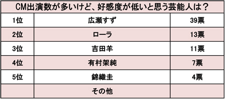 「広瀬すずは毒がある」「吉田羊はジャニオタを敵に」好感度が低いと思うCMタレントランキング