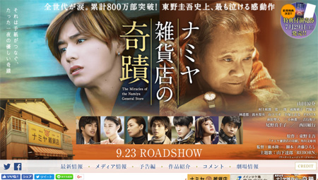サイゾーウーマンHey!Say!JUMP・山田涼介&西田敏行の共演! 映画『ナミヤ雑貨店の奇蹟』鑑賞券プレゼント 読者プレゼント Hey!Say!JUMP・山田涼介&西田敏行の共演! 映画『ナミヤ雑貨店の奇蹟』鑑賞券プレゼント 2017/08/12 21:00 『ナミヤ雑貨店の奇蹟』公式サイトより 東野圭吾作品史上最も泣けると評判の小説『ナミヤ雑貨店の奇蹟』が、実写映画として9月23日より全国で公開されます。主人公を演じたのは、ドラマや映画等、さまざまな場で活躍を見せるHey!Say!JUMPの山田涼介。そのほかにも村上虹郎や林遣都、西田敏行など、若手からベテランまで、実力派のキャストが揃い踏み。東野圭吾の作品は、ミステリー色の強いものが多いですが、本作は“東野圭吾作品史上最も泣ける”といわれています。一体どんな物語なのでしょうか。さっそくあらすじをご紹介します! 敦也・翔太・幸平の幼なじみ3人組は、ある日の夜、1軒の廃屋に忍び込んだ。建物の中を見回っていると、突然、郵便受けから一通の手紙が舞い込んできた。彼らが忍び込んだその場所は、かつて人々の悩み相談を受けていたという「ナミヤ雑貨店」だったのだ。そして、驚くことにその手紙は、32年前に書かれたものだった。彼らはその事実に戸惑いながらも、店主に代わって返事を書くことに。それをきっかけに、彼らの運命は変わっていき……。 本作は、学歴も職もなく、未来に何の希望も持てない青年と、悩み相談を請け負う店主との、32年という時間を超えた交流が描かれるんだとか。また、さまざまな悩みを持つ人が現れるため、思わず共感してしまう場面もあるかもしれません。 今主演を務めた山田は、本作のほかに今年の12月にも自身の主演する映画『鋼の錬金術師』が公開予定。ドラマ『探偵学園Q』(日本テレビ系)ではあんなに初々しかったのに、今や立派な俳優に……。今後の演技仕事にも注目ですね! 今回は、映画『ナミヤ雑貨店の奇蹟』の鑑賞券を3名の方にプレゼント。「山ちゃん出るなら見なきゃ~」と今から楽しみにしている方はもちろん、「原作知ってるから映画はいいかな」と思っている方ももちろん! サイ女読者の皆さま、奮ってご応募ください。お待ちしています! ※8月22日〆 最終更新:2017/08/12 21:00 次の記事 3年後に消えてる若手女優3人 >