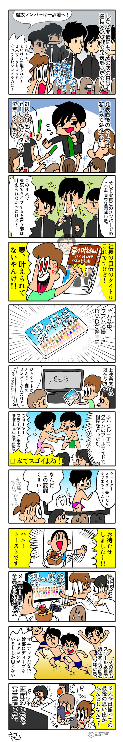 サイゾーウーマン芸能ジャニーズ、EXILE、EBiDANに次ぐ第4勢力! BOYS AND MEN研究生の残酷かつ美しい成長物語 芸能 えるたまのアイドル自由帳 第56回 ジャニーズ、EXILE、EBiDANに次ぐ第4勢力! BOYS AND MEN研究生の残酷かつ美しい成長物語 2017/08/21 14:28 えるたまのアイドル自由帳 トウキョウのシンメ崩壊? <グループ紹介> ●BOYS AND MEN 東海地方出身・在住の男性メンバーで構成され、全国区で人気が沸騰中のBOYS AND MEN(通称・ボイメン)。そんな彼らの弟分として活動中なのが、BOYS AND MEN 研究生だ。で、このグループの説明が非常に難しいので、詳しくは上記マンガを読んでもらうとして。一言で魅力を説明するならば、選抜ユニット制を導入するなど、AKB48やモーニング娘。のようなサバイバルアイドルの面白さ!アイドルの成長物語ヲタにはたまらないグループなのだ。選抜ユニット「祭ナイン」が8月16日にデビューシングルをリリース。オリコン何位まで食い込むか、要注目である。 えるたま 東京生まれロキノン育ち今はアイドルのATM。マンガ家・イラストルポライター。 ブログ ツイッター 前のページ12 最終更新:2020/02/10 14:03 関連記事 マンガ『ヅャニーさん』――第47回【YOUは腹黒いネ!】マンガ『ヅャニーさん』――第46回【YOU、全裸はNO】マンガ『ヅャニーさん』――第44回【もしもしヅャニー】マンガ『ヅャニーさん』――第42回【サカッモ……クン!?】マンガ『ヅャニーさん』――第41回【がんばれノイッチ(3)】 次の記事 福山雅治、インスタに「痛いおじさん」 >