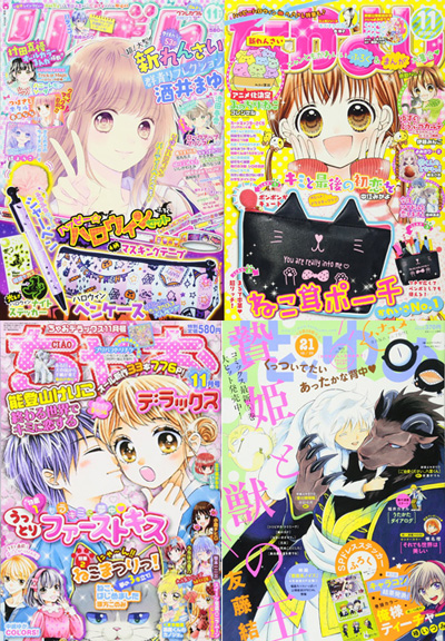 「りぼん」11月号(集英社)/「なかよし」11月号(講談社)/「ちゃおデラックス」11月号(小学館)/「花とゆめ」10月20日号(白泉社)