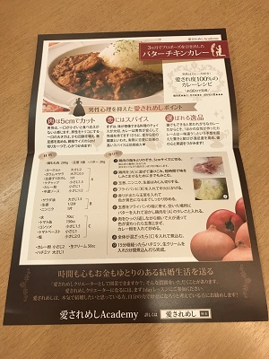 サイゾーウーマンカルチャースポット彼氏が一瞬でできる“婚活レシピ”!? カルチャー 底辺グラドルが突撃レポ! 彼氏が一瞬でできる“婚活レシピ”!? 「愛されめし」レッスン潜入で、意外な展開に! 2018/01/15 15:00 料理婚活アラサー 1秒も包丁を握ることなく終了 レッスンでもらった「愛されめし」レシピ その後も、こんな調子の講義が続き、料理レシピなどの話は一切出てこずじまい。先生がそれらしいことを口にしたのは「彼が二日酔いなのに、唐揚げを揚げるような女は選ばれませんね」というくだり。そりゃそーだろ! とツッコミどころが多いのだが、周りの参加者はコワくらいの勢いでペンを走らせている……。 終盤には、冒頭の謎のフェミニン男性が再登場。実は、彼も講師の1人で「ボクは、なぜ元カノと別れたか?」など、男性目線のリアルな話を語ってくれたのだが、これは素晴らしかった。彼が20代の若きイケメンという部分もよかったが、第三者の男性の意見を交えることで、女だけで集まって恋愛話をした時にありがちな、無意味なポジティブさや無謀な希望論を持ち寄って励まし合い、進歩も成長もないという事態を避けられるからだ。また、彼の本業は美容師のため、受講者の髪型や服装のアドバイスもしてくれる。うん、大事ですな! こうして、「愛されめし」講座は1秒たりとも包丁を握ることなく終了。「めし」要素皆無なことに関しては終始ギモンだったが、先生の言う「胃袋をつかむ」とは、ただ単に料理が上手というわけではなく、女としてのトータルバランスがよいことを指しているのだと理解した。 つまり、この「愛されめし」授業のメソッドというのは、まずはマインドを変えることで恋愛やプライベートを充実させ、とりあえずモテるようになれ、そして料理のウデを披露しろ……って理屈らしい。まあ、凡百のモテ本に書かれているような内容だけれども、ごもっともではあるまいか。その“気づき”を、お話し上手な先生と、若いイケメンが与えてくれたのだ。 ■入会後に待っている「愛されめし」レシピ 今回、私が参加したのは1日限りのお試し編。後日、無料の個人面談にちゃっかり足を運ぶと、「愛されめしAcademy」に入会することで、継続的に月1~2回のお料理レッスンが受けられる、とのこと。なるほど、「愛されめし」の「めし」の部分は、この先に隠されているのか……! この時、先生は「入会金のお金が心配なら、今ここでカード会社に電話して、枠を増やせるか聞いてもいいですよ!」と、激奨してきたものの、料理する前におなかいっぱいになってしまいました! 最後に、先生がポロっとこぼした言葉で印象的だったのは「私は『愛されめし』メソッドで今のカレのマインドを変えていったから、私が疲れている時は野菜スープを作ってくれるのよ」というエピソード。先生……彼氏いるんだ! なにはともあれ、そのカレとお幸せに……! 吉沢さりぃ(よしざわ・さりぃ) 山梨生まれ。B107cm、Kカップの現役底辺グラドル兼ライター。2016年に『グラビアアイドルのぶっちゃけ話』(彩図社文庫)で作家デビュー。趣味は飲み歩き。 前のページ123 最終更新:2018/01/15 15:00 婚活のバリエーションは無限…… 関連記事 “自衛隊員の妻”になりたい女性が増加中!? 出会い方、人気の秘密……自衛官との婚活事情膣にも「ブス」がある!? “洗脳”寸前の「膣美人レッスン」を体験してみた「ちゃんとした料理を作らなきゃ」「ていねいに暮らさなきゃ」、“料理”に自分で呪いをかけてない?赤羽に若い“キラキラ女子”が殺到!? ディープすぎる街で「インスタ映え」スポットを調査バーで1人飲みしたら素敵な男性と出会えるか? 六本木の人気会員制バーに潜入 次の記事 『もみ消して冬』初回13.3%も厳しい声 >