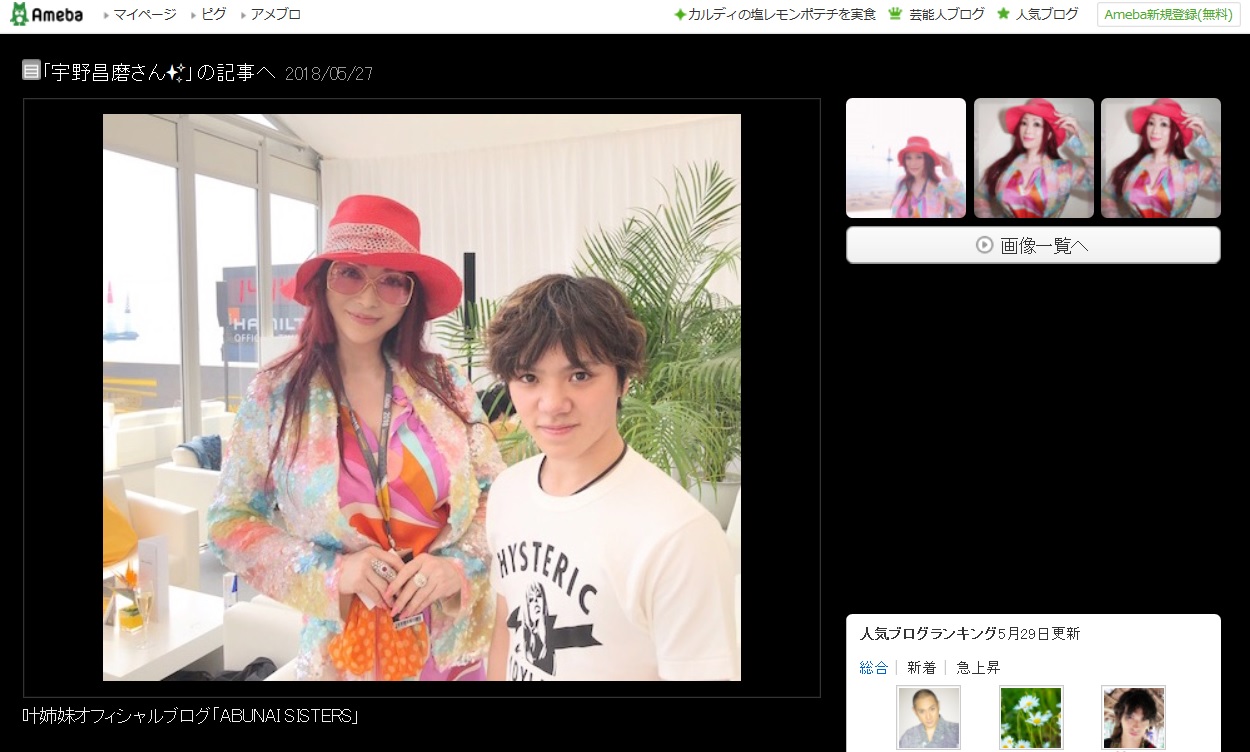 サイゾーウーマン叶美香、宇野昌磨選手の2ショットに驚きの声続出 小ネタ <芸能界SNS小ネタ> 叶美香、宇野昌磨選手のツーショット公開で「合成かと思った」「響き合い感じる」と驚きの声 2018/05/29 16:15 芸能界SNS小ネタ 叶美香公式ブログより 5月27日、タレントの叶美香が自身のブログを更新。投稿された写真が注目を集めている。 この日、叶は千葉・幕張海浜公園沖で行われたモータースポーツ「レッドブル・エアレース千葉 2018」の決勝レースを観戦。その後、『宇野昌磨さん』というタイトルでブログをアップし、平昌五輪のフィギュアスケート・男子シングルで銀メダルを獲得した宇野昌磨選手(20)との2ショットを公開した。 叶は宇野について、「とても礼儀正しく大人っぽい魅力の笑顔がステキな宇野昌磨さんとお会いいたしましたよ」と投稿。あどけない童顔が女性ファンに人気の宇野を“大人っぽい”と評し、独特のセンスを見せた。 この投稿に対し、双方のファンから「驚きのツーショット」「意外な組み合わせ」「女神と天使やん」「合成写真かと思った」「彼を『大人っぽい』と内面で評価する美香さんさすが」「宇宙というか、哲学的なサムシングの響き合いを感じる」など、驚きや歓喜の声が多数寄せられた。一方、「宇野さんには刺激が強かったのでは?」「昌磨くんが誘惑されちゃう~」といったコメントもあり、異色の組み合わせにさまざまな意見が寄せられている。 最終更新:2018/06/21 18:30 関連記事 退院した叶美香と姉・恭子の関係性に嗅ぎとった、姉妹に忍び寄るあの「気配」「ロンブー・田村淳妻と陶芸」矢口真里、「サンタコスプレ公開」叶美香ら“迷走タレント”最前線叶美香がテレ東の旅番組に降臨......知っても得しない「さざ波ニュース」宇野昌磨は“例外”? 記者が「二度と取材したくない!」と叫ぶアスリートを実名暴露羽生結弦、宇野昌磨……平昌五輪男子フィギュア代表のイケメン度をDr.高須幹弥がジャッジ! 次の記事 『ペコジャニ∞』、ファン激怒の事態 >