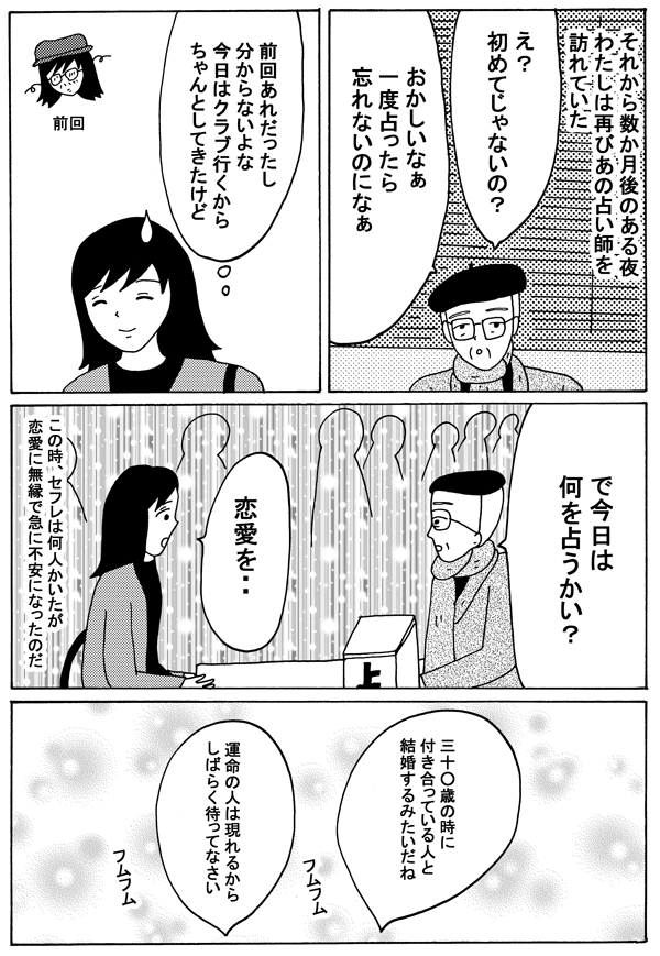 サイゾーウーマンカルチャーマンガ緑丘まこ『30代独女、それでもお酒がやめられない』【23回】路上の占い師は当たるのか カルチャー 【連載】「30代独女、それでもお酒がやめられない」(緑丘まこ) 【マンガ】路上の占い師は信用できるのか――「破滅」と占われたあの日【23回】 2019/02/23 18:00 緑丘まこ マンガ緑丘まこ30代独女、それでもお酒がやめられない それから数カ月後 次のページ 絶対ウソだ! 前のページ12345次のページ 関連記事 【配信者マンガ】「R18配信」で2度の衝撃!? 臨場感たっぷりの「セックス音」にムラムラしたものの【第20回】【タイ移住マンガ】とりあえず渡航日決めちゃおう! 怒涛の「転職&結婚」プロジェクト【24話】【日雇いマンガ】35話『分かりたい、分からない……! ブルーベリー農園の悲劇』【マンガ・ヤリマン引退】妊婦の性欲、セックス以外でどう発散する? オナニー・AV鑑賞、そして……【第27回】【マンガ】元ヤンの同僚はいい子だった――「固定観念」に囚われた自分に、気づいた話【21話】 その他の作品を読むバックナンバーを読む