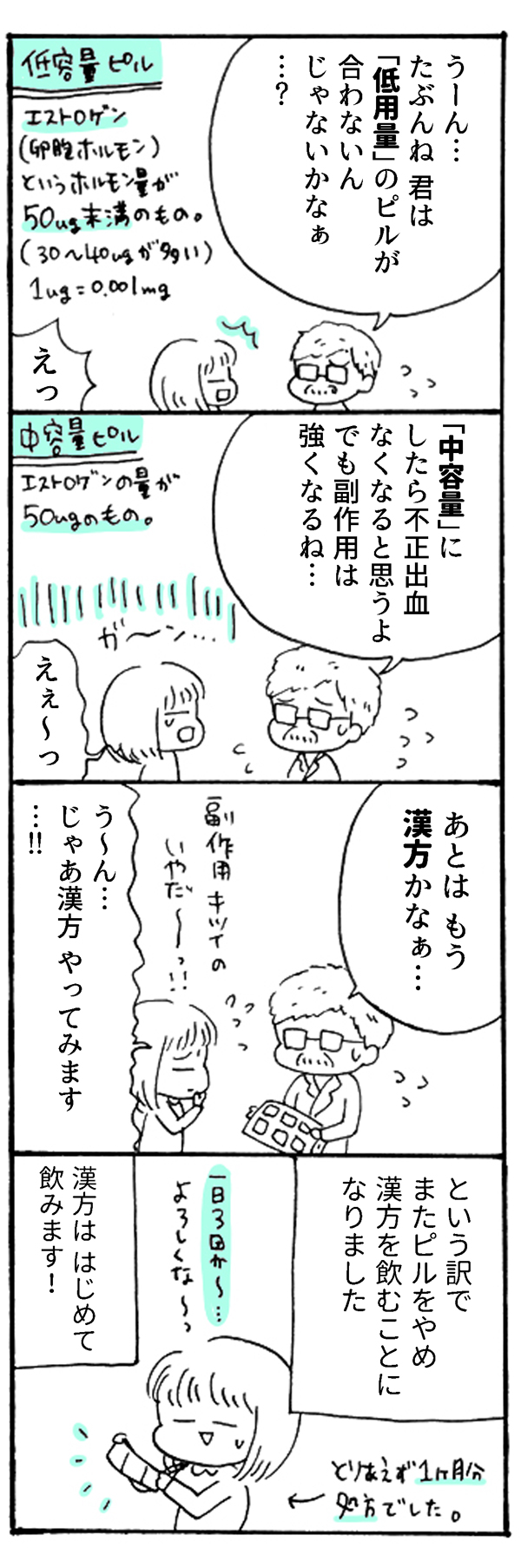 サイゾーウーマンカルチャーマンガ【21~30回】月経困難症マンガ カルチャー 【連載】私の生理、「病名」がつきました。~月経困難症、ピルに漢方あれこれ5年試してみたら~ 【月経困難症マンガ】ピル服用で不正出血が止まらない!? 【第21回~第30回まとめ読み】 2019/04/28 18:00 まお 私の生理、「病名」がつきました。月経困難症マンガ 低用量ピルが合わない体? 漢方はまずい? 次のページ 漢方を美味しく飲むコツは 前のページ123456次のページ 関連記事 【マンガ】ふっくらタイ移住まんが~ブラック企業を辞めたらバンコクでした~【第1話+告知】【毒親支配マンガ】彼母の「息子依存」が過剰すぎる……? 最初に気づいた「異常さ」の片鱗【7話】【マンガ】ピル太りのダイエット、「糖質制限」がめちゃくちゃ効きました!【第58回】【マンガ】それでもお酒がやめられない! 40歳独女・ヒロコさんと酒を飲んだあの日【27回】【配信者マンガ】「50万円分」のスイーツ事件簿! 嫌がらせの犯人は…?【第26回】 その他の作品を読む