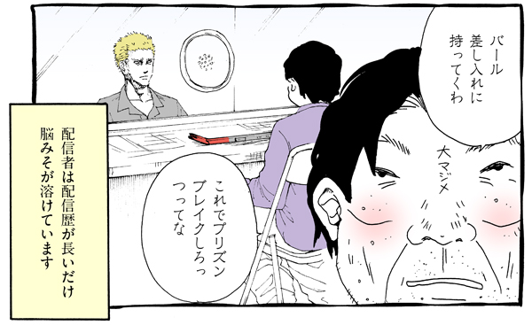 サイゾーウーマンカルチャーマンガあさの☆ひかり『ネット配信で人生が狂った人の裏側ぶっちゃけていいスか!?』【28話】留置場でそんなのアリ!? カルチャー 【マンガ連載】ネット配信で人生が狂った人の裏側ぶっちゃけていいスか!? 【配信者マンガ】留置場でそんなのアリ!? 詐欺師に「斜め上」のアドバイス【第28回】 2019/05/04 13:00 あさの☆ひかり マンガあさの☆ひかりネット配信で人生が狂った人の裏側ぶっちゃけていいスか!? 留置場への差し入れ ※マンガ第8回参照 ――毎週土曜に、最新話を更新。次回をお楽しみに! あさの☆ひかり 10月3日生まれ。東京都出身。 グラビアアイドルとして活動したのち、エッセイマンガ家として多数の作品を発表。潜入取材を得意とし、社会の裏側からサブカル、芸能界まで幅広いネタをマンガにしている。 既刊に『芸能界の裏側ぶっちゃけていいスか!? 三十路グラドルのつぶやき』(ぶんか社)『何度か消されかけましたが、こりずに芸能界の裏側ぶっちゃけていいスか!? 』(同)など。 ◎あさの☆ひかりTwitter https://twitter.com/asano_hikali <バックナンバーはこちら> ■第1回~第4回・まとめ読み ■第5回~第8回・まとめ読み ■第9回~第12回・まとめ読み ■第13回~第16回・まとめ読み ■第17回~第20回・まとめ読み ■第21回~第24回・まとめ読み ■第25回…三十路アイドル、「パンツ売り」で一攫千金!? ■第26回…「50万円分」のスイーツ事件簿! ■第27回…「投げ銭」システム、ちょっとイイ話 前のページ12 最終更新:2019/05/04 13:00 ネタに全振りしてる人生 関連記事 【31~40話】ヤリマン引退!~マンを持して育児はじめました~【マンガ・まとめ読み】【21~30話】ヤリマン引退!~マンを持して育児はじめました~【マンガ・まとめ読み】【月経困難症マンガ】卵巣に「のう腫」が見つかったらどうする?【第41回~第50回まとめ読み】【毒親支配マンガ】結婚の挨拶、いよいよ義母と初対面! 私の印象良くないよね……?【10話】【月経困難症マンガ】「生理を知らない成人男性」って実在したの!?【第31回~第40回まとめ読み】 その他の作品を読むバックナンバーを読む 次の記事 “公開口説き”でドン引きされた芸能人3人 >
