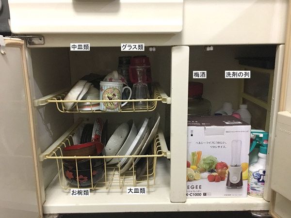 サイゾーウーマン暮らし100均・雑貨キッチンが臭くなるNG収納 暮らし 30代女子の「煩悩部屋」ビフォーアフター 買ってはいけない! やってはいけない! キッチンが臭くなるNG収納と対策法5つ 2019/06/17 19:30 伊藤まき 伊藤まき「汚部屋」ビフォーアフター 毎日使うお皿は、出し入れしやすい場所へ! [Before]驚きの重ね技でも、モノが崩れる、割れる!? 以前のシンク下には、多数のお皿と保存容器がありました。KさんのA型らしさが感じる丁寧な重ね盛り芸です。でも、目的のモノを手にするまでのストレスが想像できます。排水口も近く、プラスチック容器の臭い移りも心配……。 [After]割れる心配も少なくなりました! 左側の上段と下段に分けて、食器類の住所を作りました。手前には普段使いを、奥には来客用を収めます。右側はデッドスペースのため、梅酒と洗剤ストックを置きました。背の高いモノを奥にすれば、「見える化」収納になります。 次のページ 湿気が気になる、排水口まわりの収納ルール! 前のページ123456次のページ 関連記事 ダイソー、ニトリを活用! スペースがなくても大丈夫、「トイレ収納」を極める5つのコツセリアの100円グッズで、ランドリーラックのイライラ「隙間」を快適収納にアップ!【セリアずぼらシュラン】「無印」類似品が100円! 「ステンレススポンジトング」★5つ“汚キッチン”を片付ける5つのポイント! 皿、保存容器や鍋の「要不要」はコレで見極めるやってはいけない「オシャレ収納」! キッチンが“黒カビ”パラダイスになるNG例