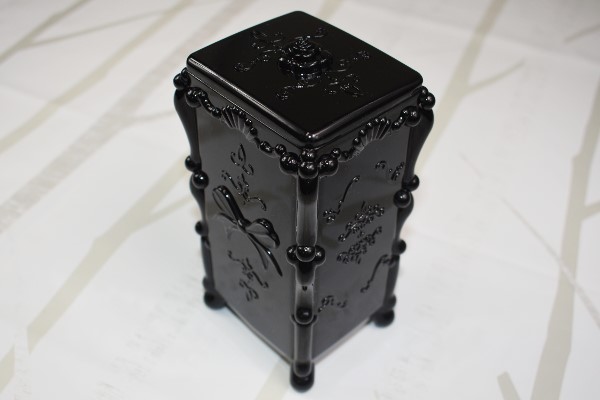 カラーリングは黒一色で、リボンや紋様が映えてる同商品。どことなくゴスロリ風というか、ANNA SUI風ともいえそうです。作りは結構しっかりしているようなので、まあ200円でも不思議ではないかな。ネットの口コミを見ても「まるでアナスイのような感じで可愛い」「アナスイ好きなので購入」「百円ショップで売っているとは思えない可愛さ」という声が多く、デザインが好評のようです。
