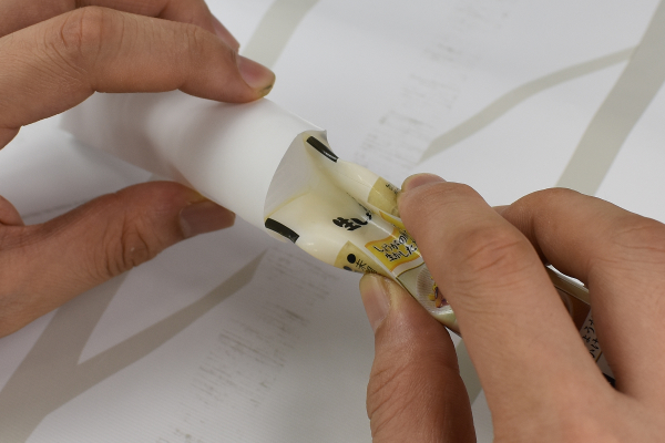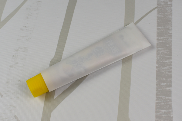 同商品のサイズは約縦125×横40mmとなっており、厚さは0.15mm。実際に「生しょうが」のチューブをカバーに入れてみたところ、すっぽりとジャストでハマってくれました。