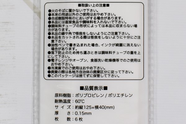 サイゾーウーマン暮らし100均・雑貨セリア「調味料チューブカバー」レビュー 暮らし 【100均ずぼらシュラン】 【100均ずぼらシュラン】冷蔵庫内をすっきり見せたい人向け!? セリア「調味料チューブカバー 6P ホワイト」 2019/07/31 13:30 ずぼら均子 100均セリア100均ずぼらシュラン 思い思いに飾り付け可能なのが◎ ポイントは、なんといっても、カバーが無地のホワイトタイプなので自由にアレンジできるところ。試しに生しょうがのチューブが入ったカバーに、「GINGER」と書いてみます。これでチューブにカバーをかけていても、中に何が入っているのか一目瞭然。見た目も相当シンプルになったので、冷蔵庫の中身がスッキリして見えそうですね。 実際に購入した人は、「私はアルファベットシールを貼って可愛くデコってる」「イラストを描きこんで遊んでます」と思い思いに楽しんでいる様子。 冷蔵庫内が何となくゴチャゴチャしていて嫌という人は、ぜひ同商品を活用してみては? この記事も読まれています 【100均の収納アイテム・DIYグッズ】おすすめアイテム27選!【ダイソー・セリア・キャンドゥ・ワッツ】 100均ずぼらシュランバックナンバー 前のページ12 最終更新:2020/02/03 17:17 世の中にはさまざまな需要があることを知る 関連記事 【ダイソーずぼらシュラン】キッチンから車まで一つでOK、万能掃除グッズ「マジックタオル」を検証【ダイソーずぼらシュラン】絶賛に次ぐ絶賛の洗顔グッズ「繭玉」、実際に使ってみたら……【ダイソーずぼらシュラン】「U R GLAM」アイブロウペンシルの耐水性チェック! その結果は……【ダイソーずぼらシュラン】爽快感MAX! 角質がボロボロ落とせる「人工軽石(アロエ)」【ダイソーずぼらシュラン】 「ロゼソープケース」は「底が水アカでドロドロ」問題を解決できる? 次の記事 “猫”に助けを求めた42歳女の「大麻所持裁判」 >