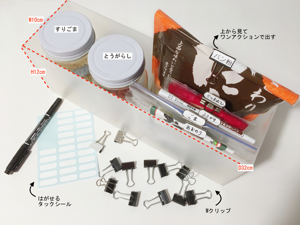 サイゾーウーマン暮らし住まい食品収納は「無印良品」のファイルが正解! 暮らし 伊藤まきの「お片付けSOS」相談! 「無印良品」のファイルが正解! 調味料・食品の“ムダなし”簡単収納テクニック 2019/08/26 19:30 伊藤まき 「お片付け・お掃除SOS」伊藤まき 食品ストックは、グループ分けが正解 [2段目]迷子になりがちな「袋モノ」の保管法 袋モノ(乾物類)のストックには、無印良品のポリプロピレンファイルボックス・1/2サイズ(がオススメです。例えば、2段目の空間をさらに棚増しして2段に分ければ、合計6つのグループを入れることができます。 ちなみに、ビン類やカップラーメンなど大型食品は、収納ボックスがなくても大丈夫です。背の高いモノを後ろに、タテ1列に並べれば在庫管理ができます。収納ボックスは、何を置くかを決めてから購入するようにしましょう。 袋モノの「調味料」は、「Wクリップ」を使うと快適! [参考]Wクリップを使えば埋もれない! ファイルボックスに袋モノの調味料を収納するときは、上から見てワンアクションで出し入れできるように「Wクリップ」を使います。写真のように、「はがせるタックシール」や「マスキングテープ」を使ってクリップの背にラベルを貼ります。袋モノにありがちな、下に沈んで迷子になる、粉が散らかって汚れる心配がなくなります。 次のページ 調味料の入れ替えは「定番」に限りオススメ! 前のページ12345次のページ 関連記事 タオル収納は「ダイソーのフラップ式ボックス」が正解! 狭い洗面所も清潔&極楽のコツ「食器棚」の収納力アップに“アレ”は厳禁!! 劇的チェンジの秘訣で「容量300%増」も!?買って損なし「ニトリのカラボ」最強説! キッチンカウンターから絵本棚まで“激安”対応ダイソーの「落ちない名品」で、イラッとするトイレの“収納と掃除”が極楽に!セリアの100円グッズで、ランドリーラックのイライラ「隙間」を快適収納にアップ!