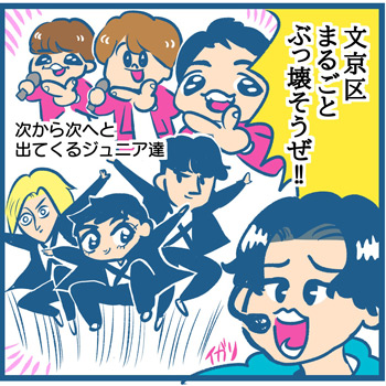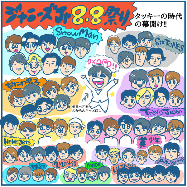 サイゾーウーマンカルチャーマンガ 『ジャニーズJr.8・8祭り』その一部始終 カルチャー えるたまのアイドル自由帳 第65回 ジャニーさんに届け~眩しい水着Jr.の勇姿よ! 『ジャニーズJr.8・8祭り』その一部始終 2019/08/24 14:00 えるたま えるたまのアイドル自由帳ジャニーズ ――マンガ家・えるたまが、パロディとリスペクトでアイドルたちをいじくり愛でる! K-POPを中心に、男女問わずアイドルと呼ばれるすべての“煌めき”たちに捧ぎます……。 ※これまでwebサイト「おたぽる」で連載していたバックナンバー(1~55回)はこちら! タッキー時代の幕開け!! 次のページ 俳優活動メインのジュニアも登場! 1234次のページ 関連記事 【マンガ】「Jr.EXILE」ってジャニーズJr.みたいな? LDH若手の奇祭『BATTLE OF TOKYO』【マンガ】ジャニーズ、バーチャル進出で大ヒット!? “あすかな”にハマったド新規が見た「正しさ」【マンガ】ジャニーズJr.・Snow Man増員後、単独初公演――ファンが見たのは希望か“慣れ”か!?【マンガ】タッキーの神の一手か愚策か? ジャニーズJr.・Snow Man増員でファンが見た地獄と希望【マンガ】平野紫耀はアイドル最終兵器キメラである――LDH・K-POPオタを唸らせるKing&Prince【アイドル自由帳:59回】 その他の作品を読む