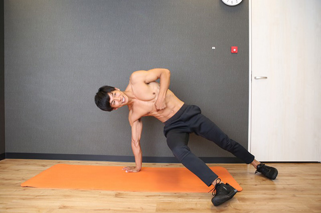 サイゾーウーマン美容・健康ジムで見かける「間違った運動」をする人 美容・健康 インタビュー ダイエットに無意味!? ジムで見かける「間違った筋トレ/運動」をする人をプロトレーナー・腹筋王子が指摘 2019/09/29 18:00 池守りぜね インタビュー美容・健康 “腹筋王子”カツオさん ダイエット目的でフィットネスジムに通っているという人も多い昨今。専属トレーナーの管理の下、体づくりに勤しむ人もいる一方、自己流でトレーニングに励んではいるものの、「効果をあまり実感できない」「なんとなく運動しているだけ」という人も少なくないのではないか。特に「自由な時間に利用ができる上に、手ごろな定額制」という理由で、最近人気がある24時間制ジムの利用者は、こうした状態に陥りやすいと考えられる。 そこで今回、そんなトレーニング初心者やこれからジムでダイエットを始めようと考えている人に向けて、「腹筋インストラクター」として知られる“腹筋王子”カツオさんに「ジムで見かける『意味のない運動』をするダイエッターたち」の問題点をズバリ指摘してもらった。併せて、美しく均整の取れた筋肉の持ち主で、なんと体脂肪率は7パーセントというカツオさんによる「間違った腹筋」「正しい腹筋」の仕方も紹介する。 「トレーニングの原理・原則」を知らないとアウト? まずトレーニングの効果を出すためには、「トレーニングの原理・原則」に沿ったトレーニングをすることが大事。この原理・原則から外れると、基本的に、「間違ったトレーニング」につながります。ちなみに、この原理・原則は、僕が出身校の国立鹿屋体育大学で最初に習ったことでもあります。 【原理】 ・特異性の原理 トレーニングの種類によって鍛えられる機能は異なる →例えば、「長い距離を走りきれるような心肺持久力をつけたいから、体を大きくするようなトレーニングをしています」というのは何か違うと感じるでしょう。メリハリのある体を作りたいのに、有酸素運動しか行わないなども同じことが言えます。目的に沿っていないトレーニングをするのはあまり意味がありません。 ・過負荷の原理(オーバーロードの原理) ある器官の機能をより発達させるには、日常レベル以上にその器官を使う必要がある →同じ負荷でトレーニングを繰り返していては、筋肉はある程度は強化されても、その負荷をかけた以上の効果は認められません。負荷をかけないかたちでのエクササイズ(特に二の腕などの末端部)をずっと繰り返していてもあまり意味がないのです。 ・可逆性の原理 トレーニングをやめると元に戻る →トレーニングは続けていかなければならず、そこに「終わり」はないのです。ある一定の期間だけ火がついたようにトレーニングをして、そしてまたある期間は燃え尽きたようにまったくトレーニングをしなくなる……その繰り返しでは、あまり意味がありません。 【原則】 ・全面性の原則 全身のバランスがとれるようにトレーニングを行う →気になる箇所だけ部分的に鍛えるのはNG! ・意識性の原則 その運動が体にどのような影響を与え、どのような効果が期待できるのかをしっかり意識する →トレーニング時の筋肉の位置をイメージすること、またトレーニングプランを作ることだけでなく、この運動は「何のため」のものなのかといったことも、しっかり意識しましょう。そうすることで、“なんとなく運動しているだけ”となるのを防ぐことができます。 ・漸進性の原則 トレーニングの質・量を上げていく →ずっと同じ質・量のトレーニングをしていても、それ以上の効果は期待できません。トレーニング時はこれをしっかりと意識し、”なんとなく運動している”状態にならないようにしたいものです。 ・反復性の原則 トレーニングは反復して行うことによって、初めて効果が出るもの →トレーニング自体を1セットやって終わりにするのではなくて、2セット、3セットと繰り返し行うと効果的です。また、トレーニングは散発的、またはある一定の期間だけ集中的に行うのではなく、定期的に行うべきと言えます。 ・個別性の原則 年齢や性別、スタート時の体形などでトレーニング内容を決める →例えば、「体脂肪20%と30%の人」では、必要なトレーニングも変わってきます。はやりなどに流されず、自分に合ったトレーニングを作成していきたいものです。 「意味のない運動」をするダイエッター6例 1.「部分痩せ」したい箇所ばかりトレーニングする人 例えば「二の腕を引き締めたい」という人が、二の腕のトレーニングばかりするケースがありますが、間違いではないものの、これは「全面性の原則」に反しています。また、部分的なトレーニングばかりしている上に、効果のない運動をしている人も。引き締めるためには、どこの位置の筋肉が縮まっているのかイメージを持つとよいのですが、そのイメージと動きが一致していないトレーニング(二の腕のトレーニングなのに胸の