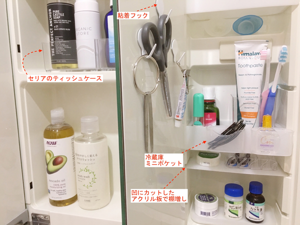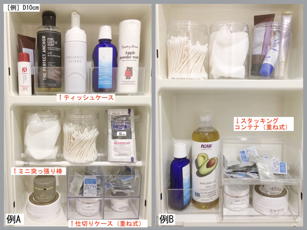 サイゾーウーマン暮らし住まい100均「冷蔵庫ミニポケット」が“洗面台”で超活躍! 朝の身支度の「イラッ!」を解決 暮らし 伊藤まきの「お片付けSOS」相談! 100均「冷蔵庫ミニポケット」が“洗面台”で超活躍! 朝の身支度の「イラッ!」を解決 2019/09/30 19:30 伊藤まき 「お片付け・お掃除SOS」伊藤まき 【1】100均のアクリルケースで「段差」を作る! [イメージ]スタッキングできる「アクリスケース」を選ぶ 2つの収納例を用意しました。 [例A]ミニ突っ張り棒を使って空間を2分割しました。 [例B]100均のスタッキングケースを使って「段差」を作りました。 Bでは、奥行きにあわせて、重ねることができるアクリルケースを選びます。ほか、コレクショングッズを保管するセリアの「ディスプレイラック」などもオススメです。 【2】100均「冷蔵庫ミニポケット」が「自立収納」に活躍! [例]戻す位置が決まれば、散らからない! 円筒ボトルやチューブ型の容器は、倒れやすい欠点があります。筆者がよく使っているのは、セリアの「ポケットティッシュケース」です。これさえ用意しておけば、冷蔵庫やコスメ収納まで幅広く活用できます。 次に、とても便利なのが「冷蔵庫ミニポケット」です。 目薬、リップ、塗り薬、コスメ試供品、ヘアピンなどが埋もれずに「自立」してくれます。100均の冷蔵庫収納コーナーにある商品ですが、洗面台、文房具、子どもグッズの収納までマルチに使えます。 次のページ みんなの定番「綿棒の空きケース」で予算ゼロ! 前のページ1234次のページ 関連記事 100均グッズで「深型引き出し」収納を極める! 書類・小物・薬のゴチャつき整理術お風呂場“スッキリ”の収納テク! 100均の「吊るす」グッズ、ニトリのマグネットで快適化「室内干し」を制するなら「天井吊るし」がベスト!? 持ち家/賃貸で変わる洗濯物干しのコツ使いにくい「洗濯機まわり」がスッキリ! 収納力アップには「○○の延長」とキャスター付きのアレ「無印良品」のファイルが正解! 調味料・食品の“ムダなし”簡単収納テクニック