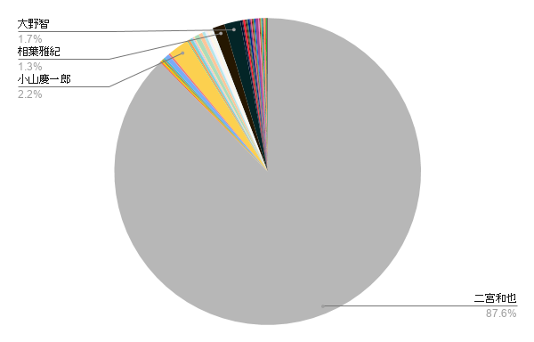 サイゾーウーマン男性アイドルSTARTO(旧ジャニーズ)2019年嫌いになったジャニーズ結果発表 男性アイドル 2019年、嫌いになったジャニーズは? 2019年「嫌いになったジャニーズ」結果発表【ジャニーズファンアンケート 2019】(回答数1,009) 2020/01/01 10:00 サイゾーウーマン編集部 ジャニーズ嵐 衝撃に次ぐ衝撃が1年もの間続いた2019年のジャニーズ事務所。ジャニーズファンの間でも、阿鼻叫喚の声があふれ返った1年となりました。そんな1年を振り返るべく、みなさんの声をアンケートで大募集しました。 今回は、「2019年に嫌いになった」というアンケートに集まった回答をご紹介していきます。(※アンケート実施期間は19年12月13〜25日、回答数1009)(原則として、アンケート回答は原文ママ) 2019年に嫌いになったジャニーズ 1位:二宮和也(嵐)87.6% 嫌いになったジャニーズ1位は二宮に決定。圧倒的な回答率でした。理由はすべて「結婚」にまつわるもの。 「結婚のタイミング、誠意の無さ、ファンやメンバーに対する態度、言動」 「結婚のタイミングを誤ったこと。他メンバーに迷惑をかけたこと。全然ファンに歩み寄ってないこと」 「 結婚報告から1ヶ月以上たっての嵐の仕事内での囲みのインタビュー内容で本格的にダメになった」 「嵐がギクシャクしていると言われる原因を作り、翔くんの言った誠意を壊した。時期的に賢くない。恋は盲目。これに尽きる。私が好きだった11/10までの二宮さんはお亡くなりになられました」 「結婚に関しての法的処置マスコミだけに神対応で、ファンには紙切れ一枚。嵐よりも、匂わせあやちゃんをとったこと。自分の中の20周年の区切りを札幌公演2日前にしたこと。ベイストでの報告は紙切れの内容なぞっただけ」 「 嵐を壊したから。好きになったことを後悔させるアイドルを初めて見ました。彼をすきだった日のことは忘れたいです。人生の汚点」 「 ファンのことを考えてない。綾子しか頭にない」 「 エゴイスト 自己中心 仲間やファンへの裏切り 言動と行動が相反するので信用できない」 「ファンだけならまだしも、メンバーまで裏切って困らせて自己中心的なタイミングで結婚したから」 「誰が見ても最悪な結婚のタイミング。ずっと「二宮だけは本当に性格悪そうだな」と思っていたけれど、やはりなという感じ」 「自分が行く札幌公演の2日前にコピペ文1枚で結婚報告をされたことで、楽しいはずのコンサートが地獄になり、チケット代に見合った公演を観られなかったから」 2位:小山慶一郎(NEWS)2.2% 昨年の同アンケートで圧倒的1位に輝いた小山。今回は2位にランクインしました。 「ダウンタウンDXにでて発言内容に幻滅」 「昨年の未成年飲酒問題を開き直ってバラエティ番組でネタにしているから」 「全く成長がみられず、一般視聴者から「NEWSの歌が下手」と言われる元凶。実力や実績ではなく、盛ったエピソードだけで芸能界を生き残ろうとしている姿勢に心底呆れる。ずっと前から大嫌いだったけど、今年もっともっと嫌いになった」 「食べ方汚いしアニメ好きを突然言い出して生き残りに必死」 「もう去年の不祥事をネタにしてる。小山のファンが増田アンチになっているから。だれのおかでグループが存続してると思っているんだろう?暴走するファンをちゃんと躾けてほしい」 「 未成年飲酒の不祥事を反省するどころかネタにしてヘラヘラしているのが気持ち悪い!大人としての常識が無さすぎる。見ているだけで不快です」 3位:大野智(嵐)1.7% 嵐の活動休止に関わる内容で、大野に批判が集まった模様。 「嵐を自分の我儘で活動休止に追いやったから 仕事がしたくないなら一人で脱退すれば良いだけの事」 「この人はわるくなかったがこの人のファンの他メンバー叩きで」 「悲しむヲタも多いのに全然悪いと思って無さそう。大野智のアンリーもひどい。メンバーの悪口ばっかり」 「二宮が非難轟々のなかやけに張り切ってる。自分が標的じゃなくなって嬉しいのかと不快になった」 「ニノの次に自己中。ニノは叩かれてるけどこの人はその陰に隠れてるよね?」 「今更ドラマやりたいとか言い出して調子に乗ってんなーと思う」 そのほか、少数コメント ■橋本良亮 「やる気がないから」 ■中丸雄一 「家事ヤロウでのモラハラぶりにゾッとするから」 ■木村拓哉 「共演して二宮の結婚の後押しをした破壊神」 ■森田剛 「宮沢りえとの結婚」 ■中居正広 「どの出演番組でも態度がぞんざいで人を馬鹿にする物言いが見ていて不快」 ■濵田崇裕 「年始からインフルでライブ欠席したかと思ったら春先には女との写真流出(しかもライブ欠席の際に撮ったもの)、ブログで女の作った料理を上げて匂わせ、年末には骨折でテレビ出演なし。ぶすなうえに自覚が足りなさすぎる。ブスならせめて中身くらいプロとして磨きあげろ」 ■滝沢秀明 「ジャニーさんを受け継ぎJrの飛躍を願って裏方に徹する決意は素晴らしいが、努力の人で有能な中間管理職はできてもトップに立