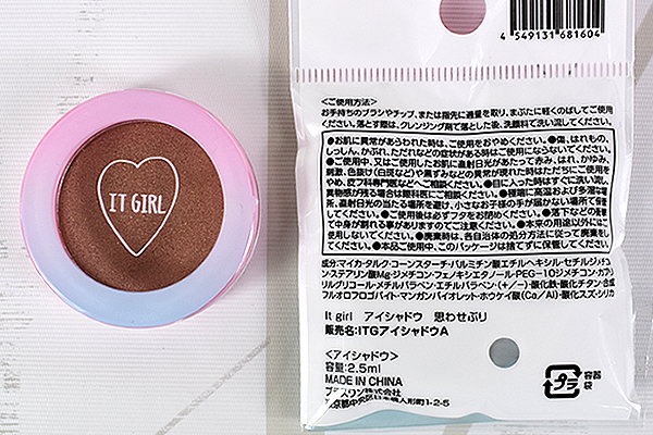 サイゾーウーマン暮らし100均・雑貨ダイソー「It girl アイシャドウ」レビュー 暮らし 【100均ずぼらシュラン】 【100均ずぼらシュラン】ダイソー「It girl アイシャドウ 夢のダンス/思わせぶり」サラサラの塗り心地に感動! 2020/01/08 13:00 ずぼら均子(ライター) 100均ずぼらシュランダイソー100均 塗り心地はサラサラ では、着け心地の方は? 試しに手首につけてみると、色合いは画像の通り。「思わせぶり」は茶色系で、「夢のダンス」はハイライトのような白っぽい色をしています。塗り心地はとてもサラサラしており、肌なじみもGOOD。さりげなくキラキラしているところもキュートです。どちらも発色がよく使いやすい色として愛用している人が多いようです。 ただし、“アイシャドウチップ”は付属していません。指で塗るならともかく、別でチップを用意するのは少々面倒くさいかも。保管場所にも困りますしね! ※サイズはライターが測っているため、実際とは異なる場合があります。 この記事も読まれています 【100均の収納アイテム・DIYグッズ】おすすめアイテム27選!【ダイソー・セリア・キャンドゥ・ワッツ】 ダイソー、セリアの商品をチェック! 100均ずぼらシュランバックナンバー 前のページ12 ずぼら均子(ライター) 100均パトロールが日課のズボラなアラサー女子。ダイソー、セリアが主戦場です! 動物モチーフのかわいい雑貨にも目がありません。 100均ずぼらシュラン 最終更新:2020/02/03 16:15 指で塗っちゃうわ 関連記事 【100均ずぼらシュラン】ダイソー「カラーピンクッションブラシ」奇抜な見た目とは裏腹に超優秀!【100均ずぼらシュラン】ダイソー「こんにゃくパフ シェル」カチカチが水に濡らすとふわふわに!【100均ずぼらシュラン】ダイソー「ミニ加湿器(ミルク瓶型)」他5アイテム【週間まとめ12/30~1/3】【100均ずぼらシュラン】ダイソー「フットウォーマー」1度入ったら出られない最強冬アイテム【100均ずぼらシュラン】ダイソー「ミニ加湿器(ミルク瓶型)」乾燥対策しながらロマンチックな気分に!? 次の記事 KinKi・光一、チケット高額転売に苦言 >