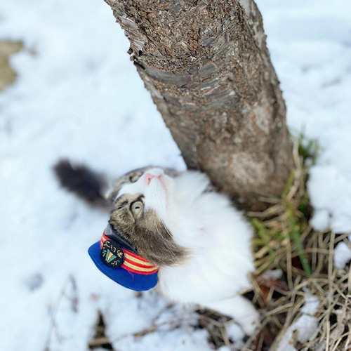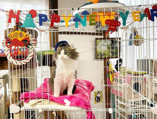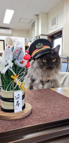 駅長就任エピソード:羽前小松駅にいた迷い猫出身。駅舎で面倒を見ているうちに、地元民から愛される存在となり、10月に駅長ポストへ就任。このたび、晴れてJRお墨付きの駅長に!