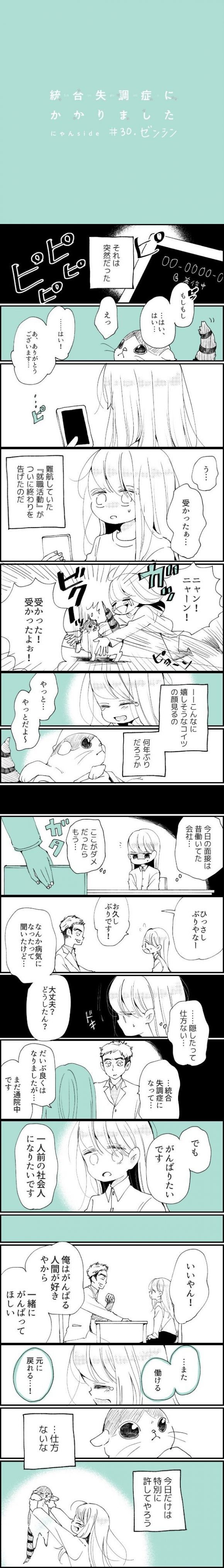 サイゾーウーマンカルチャーマンガさいこ『統合失調症にかかりました~にゃんside〜』【30話】就職活動の終わり カルチャー 【エッセイマンガ】さいこ『統合失調症にかかりました〜ニャンサイド〜』 【エッセイマンガ】統合失調症にかかりました~にゃんside〜【30話・ゼンシン】 2020/01/22 17:00 さいこ マンガさいこ統合失調症にかかりました〜にゃんside〜動物 サイゾーウーマンにて連載していた、自身の統合失調症の発症から社会復帰までを描いた闘病エッセイマンガ『統合失調症にかかりました』(著:さいこ)。今回、飼い猫の視点から病気を振り返る特別編がスタート。 猫から見た、人間の“生き辛さ”とは……。 【過去話はこちらから】 第30話 『ゼンシン』 ©さいこ ー次回31話は1月29日(火)更新予定です。 【前作『統合失調症にかかりました』はこちらから】 自己紹介編 まとめ前編1~9話/まとめ後編10~18話 19話/20話/21話/22話/23話/24話/25話/26話/27話/28話/29話/30話/31話/32話/最終話 ※本作品は個人の経験に基づいたものです。統合失調症の症状もあくまでもその一部であり、絶対ではありません。個人差がありますことをご理解ください。 さいこ/@s_______ic インスタグラムにて、統合失調症にかかった自身の体験マンガを日々投稿。 https://www.instagram.com/s_______ic/ 最終更新:2020/01/26 07:48 ちゃんとわかってくれる人いる 関連記事 【エッセイマンガ】統合失調症にかかりました~ニャンサイド〜【新連載】【エッセイマンガ】統合失調症にかかりました~ニャンサイド〜【2話・マエブレ】【エッセイマンガ】統合失調症にかかりました~にゃんside〜【3話・コメソウドウ】【エッセイマンガ】統合失調症にかかりました~にゃんside〜【4話・フテキゴウ】【エッセイマンガ】統合失調症にかかりました~にゃんside〜【5話・ザイタク】 その他の作品を読む 次の記事 KAT-TUN・亀梨に「ソロ活動ばっかり」の声 >