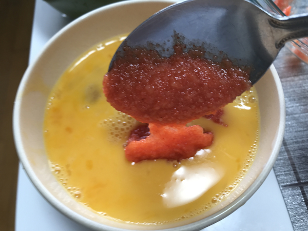サイゾーウーマン暮らし食べ物平野レミさん「ふわふわ卵の明太子炒め」 暮らし 【あのツイッターレシピ、やってみました】 平野レミさん「ふわふわ卵の明太子炒め」、簡単レシピに挑戦した結果……私が作ったとは思えない出来栄え! 2020/02/05 18:00 アウちゃん(ライター) ツイッターレシピ、やってみました フライパンでトマトをジャジャっと炒める 明太子とAを卵の中に入れて、よく混ぜます。スプーンじゃ混ざらなかったので泡立て器を出したところ、夫に止められ、お箸で混ぜることに。 スプーンは混ぜにくかったです 平野レミさんは「フライパンでトマトをジャジャっと炒める」と言っていたが、「ジャジャッ」の音が想像以上に怖かったので、少し弱火にしてからトマトを入れ、すぐに強火にした。トマトの水分が跳ねるのが怖かった……。でも、いい感じにジャーという音。 トマトの投入は水分に注意 そこに先ほどの卵を投入、ここからはサッと炒めてザックリと混ぜたら出来上がりだそうだ。ジャやサッとやザックリの擬音たちの頃合いが、私にはよくわからないので早めにフライパンからあげました。 これくらいゆるめでも大丈夫? もうちょっと炒めても良かったのかもしれないけど、なんかいい感じにできたかもしれない! アサツキっぽく切った「ただのネギ」をお好みでふりかけました。 次のページ 私がこれ卵で作ったの!? と驚嘆の出来! 前のページ123次のページ 関連記事 つくりおき食堂・まりえさん「春雨と卵のケチャップ炒め」、まじでレンチンだけで子どもが喜ぶ一品だった!山本ゆりさん「ハッシュドもちベーコンチーズ」レシピ、こんな食べ方アリ!? 料理って素敵かもしれない!料理研究家・ぼく「ガリバタ塩辛焼きそば」、料理できない主婦が“旦那ウケ”最強レシピに出会ってしまった!バズレシピ・リュウジ「悪魔の焼き牛丼」を料理できない主婦が作ったら……“勝利の方程式”に子どもがおかわり!バズレシピ・リュウジ「半熟餅カルボナーラ」、料理ダメ主婦が作ったら……“絶品レンチン餅”に感動