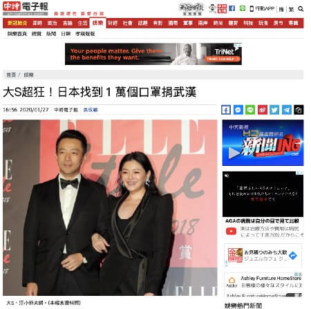 サイゾーウーマン海外台湾版『花男』女優がコロナで大炎上 海外 [中国・台湾ゴシップ最前線] 「日本でマスク1万枚爆買い」「武漢に送る」台湾版『花より男子』ヒロイン、本国で大炎上! 2020/03/02 19:00 AKO(ライター) 海外ゴシップ台湾中国 台湾の新聞「中國時報」より 新型コロナウイルスの影響でマスクが不足し、早朝から長蛇の列ができる薬局や、高額転売が日々話題になっている。徐々に拡大していく感染、そして花粉症シーズンの到来でますます“マスク難民”が増加する中、お隣の台湾で、とあるタレントが「大炎上」を続けているのはご存じだろうか。 ことの発端は、台湾版「花より男子」で主人公のつくし役を務め、台湾や中国では「大S」というあだ名で親しまれているタレントの徐熙媛(バービィー・スー)と、その夫のSNS投稿だ。1月末に日本を訪れた彼女は、なんと1万枚のマスクを購入。それを全て中国・武漢に寄付するとSNSで発信したのである。 今でこそ日本でもマスク不足が騒がれているが、1月の時点ではまだ薬局に「中国加油」「武漢加油」(編注:加油=「頑張れ」の意)といった激励のPOPが貼られていた時期。しかし、彼女の出身地である台湾は違った。この頃の台湾は、まさに現在の日本と同じくマスク難民が大量発生しており、政府がマスクの輸出を制限しはじめた時期なのだ。 そんな中、彼女は自慢げに「日本で1万枚のマスクをゲット! 全て武漢に送ります!」と投稿したのである。それだけならまだしも、彼女は国民のために輸出制限を行った台湾政府を「人でなし」「愛がない」「人が困っているときは助けるべき」と痛烈に批判した。 これらの言動に、台湾の人々は激怒。「人の国でマスクを爆買いするな!」「これからマスク不足になるだろうに……」といったコメントが大量に寄せられた。そして日本の掲示板・5ちゃんねるに「台湾人女優『日本でマスクを1万枚買い占めて中国に送りました!武漢頑張れ!』」というスレッドが立てられたことを知った台湾のネット民は、「日本でも話題になってる! ざまあみろと言いたいところだがあいつは台湾人じゃない、中国人だって誰か伝えてくれ~!」「日本の皆さんにマスクを返してあげてほしい」と述べるなどとし、大炎上に発展した。次のページ 台湾の人々が大激怒!不買運動も勃発し… 12次のページ 関連記事 山下智久、シングル3位発進で……「日本ファンもっと買え!」と中国ファン挑発で紛糾Koki,、「アジア最強新人」と中国で表紙飾るも「最強コネ新人」「プロの二世」と揶揄世界で最も稼いだ“富豪女優”がきな臭い!? 中国ヴィッキー・チャオに向けられる疑惑の目中国が生んだ26歳の大富豪、「知性と美貌を備えた億万長者」に“憎しみ”の声が降り注ぐ「ジャニーズより男前!」中国新人アイドルに絶賛の声