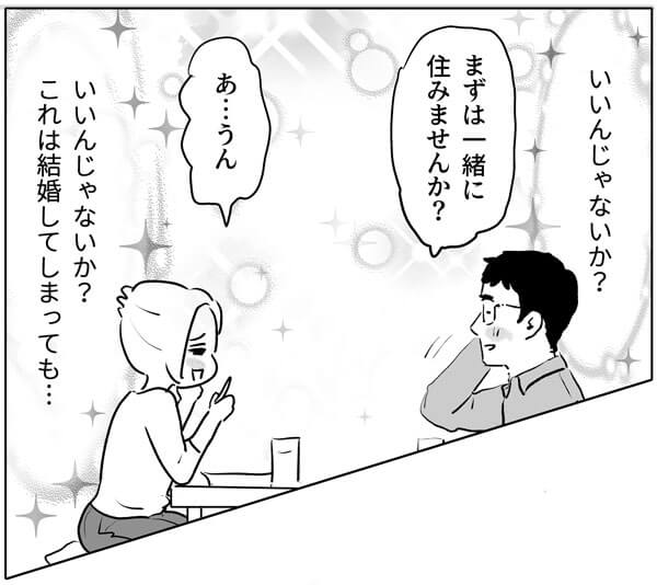 サイゾーウーマンカルチャーマンガ【マンガ】お見合い男の「金銭感覚」 カルチャー 女の共感コミックサイト・ウーコミ! 【実話】お見合い男の「金銭感覚」が異常すぎる!? デート5度目で「マンション購入」に驚愕 2020/05/08 18:00 ウーコミ!編集部 ウーコミウーコミ!マンガ婚活 「ついていけない…これがお見合いのテンポ!?」 レバ美は未婚の漫画家、34歳。ある日、妹から「お姉ちゃんの方が合いそう」とお見合い相手・コマ男を紹介される。「まずは一緒に住みませんか」の言葉に軽く承諾すると、トントン拍子に結婚話が進んでしまって!? 恋愛と条件、そして世間の“普通”に翻弄されるレバ美が、自身のお見合い体験を赤裸々に描くリアルエッセイ「お見合い結婚、恋してなくても幸せになれますか?」。 冒頭の1話目・エピソード7を無料で公開いたします。 レバ美/ウーコミ! ep.1-7……私と結婚しなくても!? ――「お見合い結婚、恋してなくても幸せになれますか?」エピソード8は、来週金曜日に公開予定! ↓最新話はめちゃコミックで公開↓ 『お見合い結婚、恋してなくても幸せになれますか?』 ↓他の作品を無料でもっと読みたい方はコチラ↓ 女性の”共感”コミックサイト『ウーコミ!』 最終更新:2020/05/08 18:00 合理的だけども! 関連記事 【実話】「エッチな漫画を描いてます」親にも言えないアダルトな職業、婚活デートで明かすのはアリ?【漫画・衝撃トラブル】参列者ドン引き……ダメンズ女が最後に選んだ衝撃の伴侶とは!?【漫画・THE自業自得な女】寿退社の勝ち組女が一転! 職だけでなく婚約者まで失ったワケ その他の作品を読む 次の記事 『Mステ』生放送再開の舞台裏 >