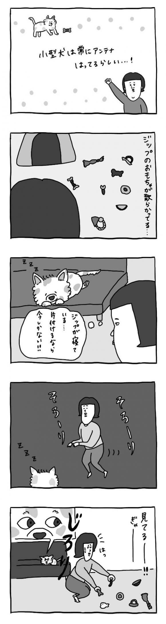 サイゾーウーマンカルチャーマンガいとうぽよん『アラサー独女、仕事辞めて犬と同棲したら毎日サイコーになりました』【漫画】犬と独女の攻防戦 カルチャー アラサー独女、仕事辞めて犬と同棲したら毎日サイコーになりました 【犬溺愛独女マンガ】汚部屋を片付けろ! わんこの寝る間の重大ミッション 2020/07/10 17:00 いとうぽよん(イラストレーター) いとうぽよん動物マンガペット ――独身、一人暮らし、彼氏なしのアラサー・いとうぽよん。平日は仕事に追われ、会社と家を往復するだけの毎日。 せっかくの休日も、ダラダラ過ごしているうちに終わり、気づけば月曜日……。そんな退屈な日々に嫌気がしたある日、彼女の前に“天使”が現れた――。その名は、「ジップ」。 このお話は、1匹のワンちゃんとの出会いによって、最高な生活を手に入れたアラサー独身女の日常をゆる〜く描いた実話である。 第40話 ©いとうぽよん そのあと、片付けてったおもちゃを片っ端から出していき、結局片付けは終わらなかった……。 ――毎週、金曜日に最新話を更新。次回41話は7月17日(金)の更新予定です。 いとうぽよん(イラストレーター) 1988年生まれのイラストレーター。イラスト以外にも、版画、裁縫、グッズ制作など幅広く活動中。 インスタグラムにて、自身の日常生活を描いたエッセイマンガを不定期投稿。 記事一覧 X:@itoupoyon Instagram:@itoupoyon 最終更新:2020/07/10 17:00 関連記事 【アラサー独身OLと愛犬の日常】天使が“噛み犬”に激変するタイミング【独身OLと愛犬の日常】朝起きて、仕事に行く気がなくなる瞬間【独身OLと愛犬の日常】金縛り!? アラサーの睡眠時に襲いかかる謎の物体とは【独身OLと愛犬の日常】19kg太ったアラサーの背中と犬のモフモフの違い【独身OLと愛犬の日常】自炊中にワンちゃんから熱視線――「ボクまってるの…」そのおねだり顔、世界一! その他の作品を読む 次の記事 ジョニデ、13歳の娘に大麻を与えていた >