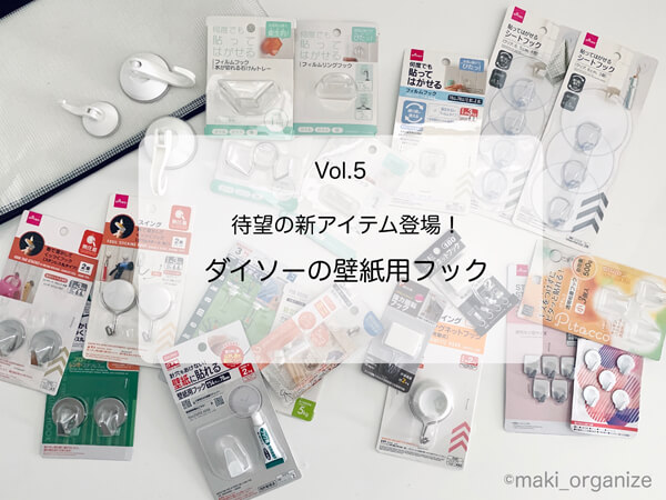 サイゾーウーマン暮らし住まいダイソーの100均レベルを超えた優秀グッズ 暮らし 伊藤まきの「お片付けSOS」相談! 収納のプロが「100均レベルを超えた」と驚嘆! ダイソー「壁紙用フック」画期的ポイントと実用例 2020/07/16 19:30 伊藤まき(収納ライター) 100均「お片付け・お掃除SOS」伊藤まき 整理収納アドバイザー1級で収納ライターの伊藤まきが、家の中の “片付かない”ちょっとした悩みを“簡単で安く”解決するコツを提案します! 整理収納アドバイザーが「散らかる家」へ訪問するときに用意する「100均の収納グッズ」とは? 前回に続いて、「100均のフック」をテーマに、プロが愛用するアイテムとその活用実例をご紹介します。 筆者の道具バッグには、写真上の「100均フック」が常備してあります。「100均フック」は、ピン・粘着テープ・吸着シート・吸盤・熱圧着・マグネットなど種類が多いため、何を選べばよいか迷う人も多いでしょう。でも、プロが使うのは「6種類」だけなんです。 【1種類目】ダイソー「貼ってはがせるシートフック」 【2種類目】セリア「何度でも貼ってはがせる フィルムリングフック」 【3種類目】ダイソー「熱圧着 熱で溶かしてくっつくフック」 【4種類目】セリア・ワッツ「ミニ小物フック」 【5種類目】ダイソーの「針穴をあけない壁紙に貼れるフック」 [写真左から] 耐荷重2kg(1個入)、1kg(2個入)、500g(4個入)(C)maki_organize 今回のおすすめは、ダイソーの「針穴をあけない壁紙に貼れるフック」です。商品名の通り、壁紙を傷めにくい画期的なアイテム! このシリーズは、筆者調べによると全部で3種類あるようです。 今回は、100均レベルを超えたその魅力と使い方のポイントを紹介します。 次のページ [1]実は特許商品! 賃貸のお悩みを解決 123次のページ 関連記事 傘の「イラッ」を100均グッズでスッキリ解決! 収納のプロが教える、実例6パターンセリア「ミニ小物フック」で部屋のイライラ解消! 収納のプロが教える、裏ワザ&実例集収納のプロが選んだ「100均グッズ」、ダイソー通称「スッポンフック」4つのスゴいポイント!SNSで人気爆発、セリア「100均フック」! プロも大絶賛「フィルムリングフック」4つの魅力収納のプロが選ぶ、セリア「100均ファイルボックス」! サイズ自由自在の“紙ボックス”活用実例3選
