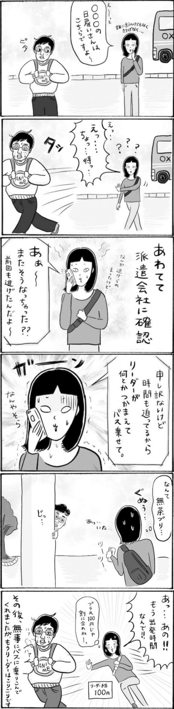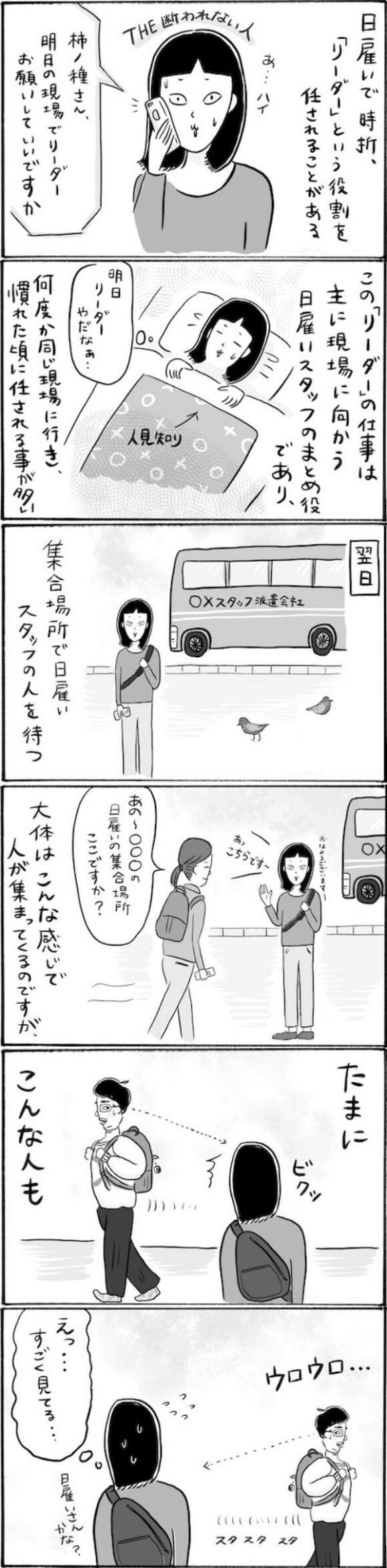 サイゾーウーマンカルチャーマンガ柿ノ種まきこ『アラサー独身女、今日も日雇いで生きてます』【日雇いマンガ】71〜77話 カルチャー 【連載】柿ノ種まきこ『アラサー独身女、今日も日雇いで生きてます』 【日雇いマンガ】『アラサー独身女、今日も日雇いで生きてます』【71~77話まとめ読み】 2020/07/24 13:00 柿ノ種まきこ(マンガ家) マンガ柿ノ種まき子日雇い 第73話『曲者ぞろいで大苦戦!? できれば避けたい現場リーダー任務』 ©柿ノ種まきこ 派遣会社からお願いされる「リーダー」役。 リーダーとは名ばかりで、要は現場まで無事に辿り着けるように サポートするだけ。 なーんだ簡単じゃん! と思いきや、強烈キャラ登場で怪しい雲ゆき……! 第74話『謎の男と追いかけっこ!? 無茶振りな現場リーダー任務(続)』 ©柿ノ種まきこ 謎のお兄さんのせいで現場に着くまでにかなり体力を消耗しました……。 リーダーってこんな大変な役割だったっけ……? 今度からは絶対に断ろうと思いつつ、 やっぱり断りきれずまた引き受けてしまうのでした。 次のページ 第75話『ギャル参戦! 止まらぬ仕事中のおしゃべりで巻き込み事故発生!?』 前のページ1234次のページ 関連記事 【日雇いマンガ】『アラサー独身女、今日も日雇いで生きてます』【36~42話まとめ読み】【日雇いマンガ】『アラサー独身女、今日も日雇いで生きてます』【29~35話まとめ読み】【日雇いマンガ】『アラサー独身女、今日も日雇いで生きてます』【22~28話まとめ読み】【日雇いマンガ】『アラサー独身女、今日も日雇いで生きてます』【15~21話まとめ読み】【日雇いマンガ】『アラサー独身女、今日も日雇いで生きてます』【8~14話まとめ読み】 その他の作品を読むバックナンバーを読む