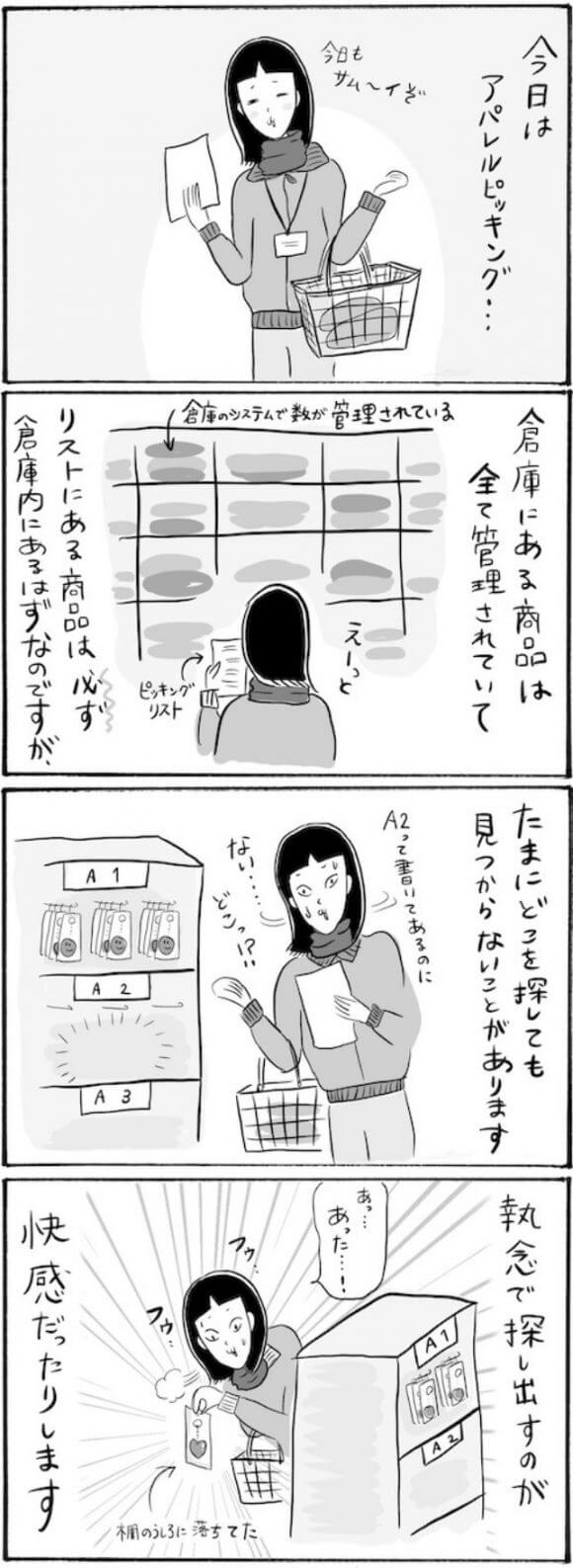 サイゾーウーマンカルチャーマンガ柿ノ種まきこ『アラサー独身女、今日も日雇いで生きてます』【日雇いマンガ】78〜84話 カルチャー 【連載】柿ノ種まきこ『アラサー独身女、今日も日雇いで生きてます』 【日雇いマンガ】『アラサー独身女、今日も日雇いで生きてます』【78~84話まとめ読み】 2020/07/24 13:01 柿ノ種まきこ(マンガ家) マンガ柿ノ種まき子日雇い 第84話『倉庫でのアパレルピッキングで悪戦苦闘したワケ』 ©柿ノ種まきこ アパレル小物(帽子、手袋、ベルト、キーホルダー等々)のピッキングは商品がどこかに紛れがち~! 棚の隅っこにあったり、後ろにあったり。 見つけられた時は心の中でガッツポーズしてます。 ――最新話は毎週、木曜日更新。お楽しみに! 前のページ1234 柿ノ種まきこ(マンガ家) 日雇いをしながらマンガを描くアラサー。過去には、「iVERY」にて婚活マンガ『女もつらいよ』を連載。現在はインスタグラムにて、マンガを不定期投稿。 Instagram:@kakinotane_makiko LINEスタンプ大好評発売中! 最終更新:2020/07/25 12:37 関連記事 【日雇いマンガ】『アラサー独身女、今日も日雇いで生きてます』【36~42話まとめ読み】【日雇いマンガ】『アラサー独身女、今日も日雇いで生きてます』【29~35話まとめ読み】【日雇いマンガ】『アラサー独身女、今日も日雇いで生きてます』【22~28話まとめ読み】【日雇いマンガ】『アラサー独身女、今日も日雇いで生きてます』【15~21話まとめ読み】【日雇いマンガ】『アラサー独身女、今日も日雇いで生きてます』【8~14話まとめ読み】 その他の作品を読むバックナンバーを読む 次の記事 “手作り”品で物議を醸した有名人 >