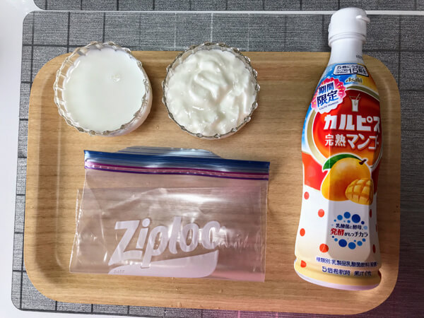 サイゾーウーマン暮らし食べ物つくりおき食堂【カルピス・完熟マンゴーシャーベット】 暮らし 【あのツイッターレシピ、やってみました】 つくりおき食堂【カルピス・完熟マンゴーシャーベット】、ジップロックで揉むだけ完成! かき氷とアイスクリームの中間食感で絶妙うまい 2020/07/22 18:00 アウちゃん(ライター) ツイッターレシピ、やってみました 料理がまったくできない主婦の私。料理は夫担当になっていますが、子どもが大きくなるにつれ、私も作らなアカンときに見舞われるように。まずはツイッターで人気の簡単レシピから料理にチャレンジ! 今日のレシピ:【カルピス・完熟マンゴーシャーベット】 完熟マンゴーの芳醇な香りがたまらない! 材料3つ【「カルピス」完熟マンゴーシャーベット】 「カルピス」完熟マンゴー 60ml 牛乳 150ml 無糖プレーンヨーグルト 150ml ジッパー袋に入れ混ぜ4時間冷凍庫へ。手で割りボトルで押し砕き完成! 材料3つで作れて夏のリフレッシュに最高! #カルピス #PR pic.twitter.com/X5JlvikrEW — つくりおき食堂まりえ (@mariegohan) June 29, 2020 暑くなってきたので、「簡単で冷たく甘いもの」を探すべくついったを彷徨っていたら、作り置き食堂のまりえさんの【カルピス・完熟マンゴーシャーベット】を発見。早速作ってみることにした。牛乳とカルピスとヨーグルトが混ざるとこんな食感になるん!? 不思議な食感に子どもも喜ぶミルク風味濃いめのマンゴーシャーベットが簡単にできたのでレポしていきます! 料理手順はこちら。 ・「カルピス」完熟マンゴー 60ml ・牛乳 150ml ・無糖プレーンヨーグルト 150ml これらを、ジッパー袋に入れ混ぜ4時間冷凍庫へ。手で割りボトルで押し砕き完成! (レシピ考案者:つくりおき食堂まりえさん) 実際に作ってみましょう! ヨーグルト・牛乳・カルピスを用意。「この組み合わせ、分離せえへんの?」と思いつつ、ジップロックに材料全て入れ、モミモミした。 材料はこちら(C)サイゾーウーマン これは、モミモミし終わった状態。マンゴー味のなので少し黄色い。このまま冷凍庫へ! ほんのり黄色(C)サイゾーウーマン 次のページ クリームっぽさとシャクシャク感がおいしい! 12次のページ 関連記事 バズレシピ【白滝のオイルパスタ風】、超絶おすすめ! 味しみしみの白滝が胃袋にドカドカ入ってしまうはらぺこグリズリーさん【すっっっっっごく美味しいポテトサラダ】、どれほどうまいのか? 作ってみたら完全勝利の奇跡の一品だった山本ゆりさん【豚バラサラダ丼】作ってみたら……「カンタン酢」だけで“絶妙うまい”結果に衝撃!バズレシピ【ラー飯】、ラーメン&ご飯の“お焦げ”は想像超えるウマさ!! 付属調味料の味付けが絶妙すぎ伝説の家政婦・タサン志麻さん【手羽元とじゃがいものだしマスタード焼き】作ってみたら……自分史上、“最高の味”と出会ってしまった!