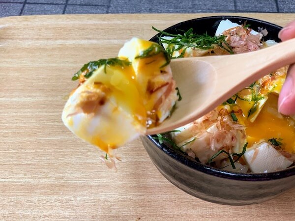 サイゾーウーマン暮らし食べ物うま味くん【さっぱり奴めし】は、暑すぎてご飯作る気にもならない時に! ポン酢&うま味調味料のブレンドが食欲そそる 暮らし 【あのツイッターレシピ、やってみました】 うま味くん【さっぱり奴めし】は、暑すぎてご飯作る気にもならない時に! ポン酢&うま味調味料のブレンドが食欲そそる 2020/07/25 19:00 アウちゃん(ライター) ツイッターレシピ、やってみました 今回は大葉もプラスしてみた 鰹節と卵黄を乗せて完成! ですが、今回はさらにさっぱりいただくために大葉もプラスしました。 卵黄に鰹節! おいしそう(C)サイゾーウーマン 豆腐とご飯だけやったら、うまさも何も感じないはずだが、今回は「うま味調味料」やごま油なども入っているので、食べるのが楽しみである。「うま味調味料のグルタミン酸と鰹節のイノシン酸の相乗効果でおいしさ増します」と、うま味くんも言っている。 大葉をのせてみた(C)サイゾーウーマン 卵黄を潰してトロ〜となったところを豆腐に絡ませて食べてみました。 卵黄トロー、豆腐に絡みつく(C)サイゾーウーマン ポン酢! ポン酢がいい味出してる。そこにきて卵黄の滑らかさとコクが、ごま油と絡まる。 さっぱりしているのに、食欲をそそる味わいに黙々と食べてしまう。ご飯に染み込んだポン酢や他調味料の相性がよくて、バカバカ胃袋にご飯が入っていきました。 この猛烈に暑い時に火も鍋も使わなくていいのが一番うれしい。暑くてご飯作るのはもちろん、食べるのもすら面倒臭い時の1品にランクイン間違いなし! ただ、ガッツリしたご飯が好みの旦那や偏食気味の我が子たちには、さっぱりしすぎて少し物足りないかもしれないなぁ、といった感想でした! 【総評】 もう一度作りたい度:★★★★☆(卵黄のコクとごま油が相性良し) ズボラ主婦でも再現可能度:★★★★★ 子どもウケまたは夫ウケ:★★☆☆☆ 前のページ12 アウちゃん(ライター) 現在4歳と1歳を育児中の家事&料理がまったくできない主婦。好きな食べ物は激辛料理。しかし料理は夫担当。関西出身、福岡在住のライターブロガー。家事に関しては【見なかった事にしよう】が合言葉。 最終更新:2020/07/25 20:08 グルタミン酸は禁断のうま味! 関連記事 つくりおき食堂【カルピス・完熟マンゴーシャーベット】、ジップロックで揉むだけ完成! かき氷とアイスクリームの中間食感で絶妙うまいバズレシピ【白滝のオイルパスタ風】、超絶おすすめ! 味しみしみの白滝が胃袋にドカドカ入ってしまうバズレシピ【ラー飯】、ラーメン&ご飯の“お焦げ”は想像超えるウマさ!! 付属調味料の味付けが絶妙すぎバズレシピ【最強のソース唐揚げ】はホントに最強!? 料理できない主婦が作ったら……簡単すぎてウマすぎて止まらない!平野レミさん「ふわふわ卵の明太子炒め」、簡単レシピに挑戦した結果……私が作ったとは思えない出来栄え! 次の記事 映画『事故物件』鑑賞券プレゼント >