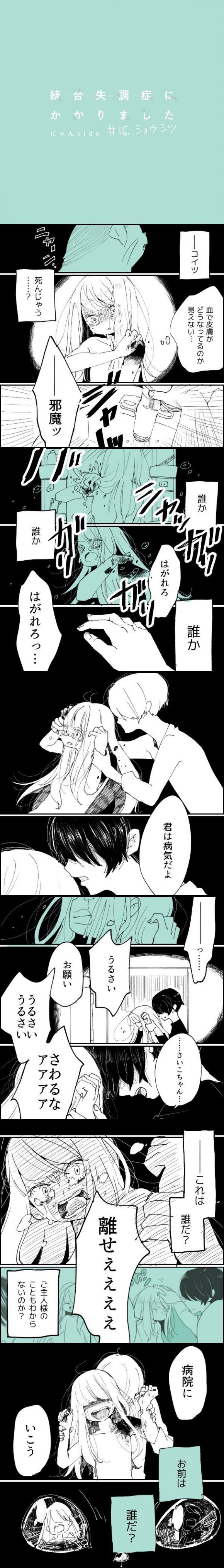 サイゾーウーマンカルチャーマンガさいこ『統合失調症にかかりました~にゃんside〜』【16~22話】ネコ目線の統合失調症マンガ カルチャー 【エッセイマンガ】さいこ『統合失調症にかかりました〜ニャンサイド〜』 【16~22話まとめ読み】統合失調症にかかりました~にゃんside~【エッセイ漫画】 2020/08/20 11:00 さいこ(マンガ家) 統合失調症にかかりました〜にゃんside〜マンガさいこ サイゾーウーマンにて連載していた、自身の統合失調症の発症から社会復帰までを描いた闘病エッセイマンガ『統合失調症にかかりました』(著:さいこ)。今回、飼い猫の視点から病気を振り返る特別編。 猫から見た、人間の“生き辛さ”とは……。 今回は16〜22話をまとめ読みでお送りいたします。 (1〜8話はこちら)(9〜15話はこちら) 第16話『ショウシツ』 ©さいこ 第17話『ビョウシキ』 ©さいこ 次のページ 第18話『キズアト』 1234次のページ 関連記事 【エッセイマンガ】統合失調症にかかりました~最終回~【エッセイマンガ】統合失調症にかかりました~32話~【エッセイマンガ】統合失調症にかかりました~31話~【エッセイマンガ】統合失調症にかかりました~30話~【エッセイマンガ】統合失調症にかかりました~29話~ その他の作品を読む