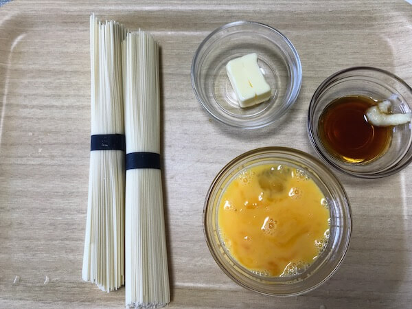 サイゾーウーマン暮らし食べ物ネットで話題【ぺぺたま素麺】作った! 暮らし 【あのツイッターレシピ、やってみました】 ネットで話題【ぺぺたま素麺】、激辛好きも要チェック! ニンニクと一味で食欲増進、完全にハマった! 2020/08/12 18:00 アウちゃん(ライター) ツイッターレシピ、やってみました 料理がまったくできない主婦の私。料理は夫担当になっていますが、子どもが大きくなるにつれ、私も作らなアカンときに見舞われるように。まずはツイッターで人気の簡単レシピから料理にチャレンジ! 今日のレシピ:【ぺぺたま素麺】河瀬璃菜 りな助 待って。大げさじゃなくmy素麺レシピNO.1が出来てしまった。 混ぜるだけの【ぺぺたま素麺】 ボウルに溶き卵1,すりおろしにんにく,麺つゆ 小1,一味,バター10g入れたら、 茹でた素麺100g(軽く湯切り)を入れバター溶けるまで混ぜる。 仕上げにコショウとパセリ。 ヤバ美味い。止まらんとはこのこと? pic.twitter.com/3hnhdGys5q — 河瀬璃菜 りな助 (@Linasuke0508) July 28, 2020 ネットやテレビでよく見かける「ぺぺタマ」。よくわからなかったんですが、どうやらニンニクと玉子を使ったパスタのレシピらしい。今回はそんな「ぺぺたま」を素麺で作る簡単レシピを見つけたので作ってみた。これが箸が止まらん! うまい! 完全にハマる素麺、こんなに夢中で素麺食べたことないわ! 心から全力でオススメしたい「ぺぺたま素麺」。作る工程も簡単すぎるのでレポしていきます! 料理手順はこちら。 1)ボウルに溶き卵1、すりおろしにんにく、麺つゆ(3倍希釈) 小さじ1、一味、バター10g入れる。 2)茹でた素麺100g(軽く湯切り)を1に入れ、バターが溶けるまで混ぜる。 3)仕上げにコショウとパセリを振る。 (レシピ考案者:河瀬璃菜 りな助さん) 実際に作ってみましょう! 素麺・バター・ニンニクチューブ(おろしニンニクがなかったので)、溶き卵を準備しました。 台所にあるものでそろう! 一味を取り忘れました(C)サイゾーウーマン 次のページ まるでパスタのような見た目 123次のページ 関連記事 『家事ヤロウ!!!』で絶賛【ナッツめんつゆ】作ってみたら……超そうめん進む味やん! 香ばしいやん!ラク速レシピゆかりさん【冷や汁風そうめん】、いますぐ作れて簡単最高! 暑くなったら何度でも作りたいバズレシピ【最強のソース唐揚げ】はホントに最強!? 料理できない主婦が作ったら……簡単すぎてウマすぎて止まらない!バズレシピ・リュウジさん【レンジ濃厚塩カルボ麺】、塩ラーメン&牛乳がまさかの“相性抜群”で最後の汁まで飲み干した!山本ゆりさんの【絶品肉みそ天津飯】はホントに絶品!? 作ってみたら、小さい子も家族全員で食べられる安心の味