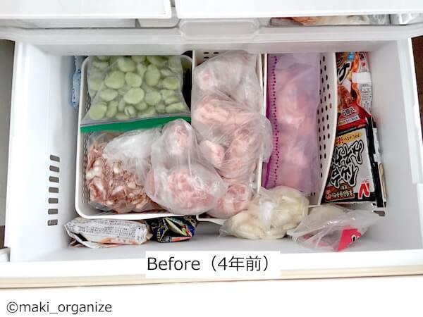 サイゾーウーマン暮らし住まいダイソーグッズで冷凍庫の収納力120%! 暮らし 伊藤まきの「お片付けSOS」相談! ダイソー「シューズボックス」で冷凍庫の収納力120%に! コストコ大量買いも余裕◎、マル秘整理テクニック 2020/08/17 19:30 伊藤まき(収納ライター) 「お片付け・お掃除SOS」伊藤まき100均 整理収納アドバイザー1級で収納ライターの伊藤まきが、家の中の “片付かない”ちょっとした悩みを“簡単で安く”解決するコツを提案します! [筆者宅例]冷凍庫の内寸サイズ(容量:上10L/下47L) 冷蔵庫の片付けシリーズ、3回目は「冷凍庫」です。新しい生活様式の影響を受けて、食材のまとめ買いは増えましたか? また「冷凍庫の収納力」に悩んでいませんか? 私は業務スーパー、ジャパンミート、肉のハナマサ、コストコに通っているので、冷蔵庫の買い替えを悩んでいるほど、まとめ買いは大量です。そんな私が実践している冷凍庫の収納力アップの技を紹介していきます。 冷凍庫の「立てる収納」が不満でした [筆者宅例]お弁当を作っていた頃 写真上は、筆者宅の4年前の冷凍庫です。深さのある引き出し収納なので、薄型のファイルボックスを使って「立てる収納」をしていました。しかし、ちっとも納得できず、何度も見直してばかり……。 そして、何度も見直しを重ねた結果、ダイソーの「シューズケース」で収納力アップがかなうと判明! その内容をご紹介したいと思います。 次のページ ダイソーの「シューズケース」で冷凍庫の収納力UP! 1234次のページ 関連記事 100均で極める「冷蔵庫」整理テクニック! 収納のプロが「うちの冷蔵室」を大公開セリアの人気「プラダン」で、無印良品いらずの“裏ワザ”! 100均グッズでできる5つのこと買ってはいけない「100均」グッズ! 下駄箱で“地雷化”する靴収納アイテム、正解はコレ「オキシクリーン」使い方! 簡単2ステップ「オキシ漬け」で“油汚れ・焦げ鍋”が衝撃スッキリダイソーの「落ちない名品」で、イラッとするトイレの“収納と掃除”が極楽に!
