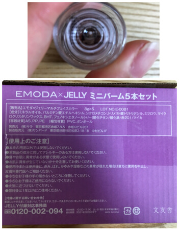 サイゾーウーマン暮らし100均・雑貨「JELLY」10月号付録レビュー 暮らし 【雑誌付録レビュー】 【付録レビュー】「JELLY」10月号、EMODAマルチバームが5色セットで1,000円以下! 高いコスパで質も◎【女性誌】 2020/08/22 15:55 tukki(ライター) 雑誌付録(ふろく)レビュー いまや付録で雑誌を選ぶのは当たり前。毎月魅力的な付録が登場し、どれにしようか迷いますよね。そこで、付録を実際に手にして、見た目や使い勝手を徹底レビューします! 今月の付録:「JELLY」2020年10月号「 マスクメイクを楽しもう!EMODAミニマルチバーム5色セット」 お得度:★★★★☆(ミニマルチバーム5本がついて、1冊920円!) もっと使いたい度:★★★★★(使い方は無限大、どんなツヤ盛りメイクも◎) おしゃれ度:★★★★★(おしゃれなツヤとニュアンスが簡単につくれちゃう✰) 「JELLY」2020年10月号(文友舎)(C)サイゾーウーマン 「JELLY」2020年10月号(文友舎)の付録は、「EMODAミニマルチバーム5色セット」です! 今回の付録は前号同様、モード系ギャルブランド・EMODAとのコラボ。ハイライター、アイシャドウ、チーク、リップに使えちゃうミニマルチバーム5色セットです☆ これさえあれば、おしゃれなツヤメイクやニュアンスメイクが簡単にできちゃいます! サイズは、縦7×横2.4(cm)と、「ミニマルチバーム」というアイテム名ながら、「ミニ」ではなく付録にしてはかなり大きめで驚きました。ケースには、「MINIBALM EMODA」とロゴが入っています。スティックのりと比較した写真がこちらです。 (C)サイゾーウーマン マルチバームの内容量は5本とも8gで、パッケージには「MADE IN CHINA」の表記が。成分表記もしっかりとされているので、安心して使用できます。 成分表記(C)サイゾーウーマン マルチバームのキャップは回すと外れます。バームは本体下の部分を回すとさらに出てくる繰り出し式で、出しすぎた場合でも、またしまうことができます。肌に直接塗っても良いですし、指にとってから塗る形でも両方使えます。雑誌では、直接塗るほうを勧めていました。 バームは繰り出し式(C)サイゾーウーマン 次のページ ミニマルチバーム全5色、スウォッチ&色解説しました!どれもツヤ感が◎ 12次のページ 関連記事 【付録レビュー】「美人百花」9月号、TOCCAエコバッグがSNSで話題沸騰! 買い物時の必需品が誕生【女性誌】【付録レビュー】「MonoMax」9月号、ジャーナルスタンダードの長財布が機能的! スマホも収納できて使い勝手◎【情報誌】【付録レビュー】「幼稚園」9月号、昨年大好評の「セブンティーンアイスじはんき」が再登場!「仕組みに感動」と大人も大満足【児童向け総合雑誌】【付録レビュー】「小学一年生」9月号が夏休みの実験にピッタリ! 3,000円の石けんキット「ソープルン」が半額以下で登場【児童向け総合雑誌】【付録レビュー】「InRed」9月号、リサ・ラーソン収納ボックスが超便利! 360度ポケットの大容量でスッキリ片付く【女性誌】