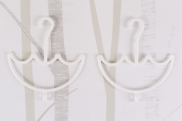 同商品は、かわいい傘の形をしたアクセサリースタンド。壁に設置したフックに引っ掛けることで、ネックレスやブレスレットをかけるスペースになります。