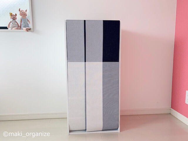 サイゾーウーマン暮らし住まいカラボを3秒で目隠しする裏技 暮らし 伊藤まきの「お片付けSOS」相談! ダイソーの名品が「じゃない使い方」で大活躍! カラボの“生活臭”を3秒で目隠し……どころか“高見え”! 2020/09/28 19:30 伊藤まき(収納ライター) 「お片付け・お掃除SOS」伊藤まき ダイソーの「テーブルランナー」なら、貼るだけ簡単! タッカーやネジで固定すれば、暖簾のように使えます(C)サイゾーウーマン ダイソーの「テーブルランナー」(W25☓H120cm)は、カラボ(約W42×D30×H88cm)を隠すのに、ぴったりのサイズ。写真上のように、2枚を重ね合わせてカラボの背板に貼り付けるだけ。 貼り付けるのは人気の「魔法のテープ」や画鋲、ホッチキスなど自宅にある道具で大丈夫。また、ハサミでカットできる加工なのでお好みの長さにも調整できます。 ダイソーの「テーブルランナー」で、リッチにスッキリ! 凸凹と色を抑えれば、スッキリします(C)サイゾーウーマン ダイソーの「テーブルランナー」を貼るだけで、カラボの生活臭が消えました。 それもそのはず! 高級ホテルやレストランで選ばれているNYブランド“チルウィッチ”のようなデザインで、類似素材(塩化ビニル/ポリエステル)が使われています。しなやかな重みを持つため、面倒なシワもありません。 別の柄と色も販売中なので、部屋のテイストに合わせてみて(C)サイゾーウーマン ズームで見ても、スッキリしています。布地に比べて、シワやヨレもありません。手アカで汚れても、中性洗剤で洗い流しできるのも魅力的です。 せっかくなので、ダイソーの「テーブルランナー」を使った目隠しとその他も比較してみたいと思います。 次のページ [比較検証1]100均の「ランチマット」も、シワなしスッキリ! 前のページ1234次のページ 関連記事 キャンドゥ「レザー調トレー」が正解! カラボ「引出し収納ケース」、無印良品と100均のアレはNG!キャンドゥのコレ、見つけたら即買い! 100均だけでチープなカラボを「北欧家具」に劇的チェンジイケアの大ヒット「スクッブ」を超えた! ダイソー400円「ベッド下収納ボックス」、衣替えに優秀すぎる4つの魅力収納のプロが「無印良品」をやめて「ダイソー」を選んだ4つの理由! 衣替えの正解は300円の「蓋付き収納 BOX」ダイソー「Wファスナービニールケース」で“らくちん”収納、4パターン! 100均グッズの意外な使い方実例