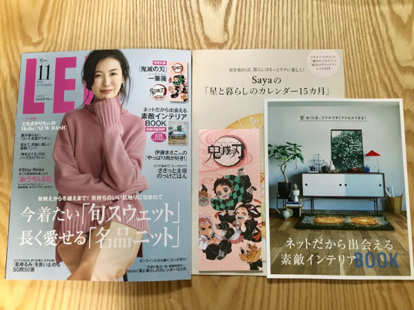 サイゾーウーマン暮らし100均・雑貨「LEE」11月号付録レビュー 暮らし 【雑誌付録レビュー】 【付録レビュー】「LEE」11月号、『鬼滅の刃』一筆箋に「可愛すぎて使えない」「飾っておきたい」とファン大興奮!【女性誌】 2020/10/10 13:30 tukki(ライター) 雑誌付録(ふろく)レビュー いまや付録で雑誌を選ぶのは当たり前。毎月魅力的な付録が登場し、どれにしようか迷いますよね。そこで、付録を実際に手にして、見た目や使い勝手を徹底レビューします! 今日の付録:「LEE」11月号 親子で楽しめる!まもなく映画公開!『鬼滅の刃』一筆箋他 デザイン:★★★★★(今大人気で話題性抜群!『鬼滅の刃』イラストが可愛い♪) クオリティ:★★★★★(840円で一筆箋・別冊付録・カレンダーの3点が付いてくる☆) 使い勝手:★★★★★(一筆箋はもちろん、カレンダーも日常使いに◎) (C)サイゾーウーマン 「LEE」11月号(集英社)の付録は、以下の3点です。 ・特別付録『鬼滅の刃』一筆箋 ・60ページ別冊付録「ネットだから出会える素敵インテリアBOOK」 ・Sayaの「星と暮らしのカレンダー15カ月」 今回の特別付録は、大人気少年漫画『鬼滅の刃』(作・吾峠呼世晴/集英社)の一筆箋! 10月16日公開の映画『劇場版「鬼滅の刃」無限列車編』とコミックス累計発行部数1億冊突破を記念して、集英社の雑誌20誌に『鬼滅の刃』の付録が付いてくるという連合企画による付録です。本誌では「『鬼滅の刃』に学ぶ“折れない心”と“家族の絆”」という特集ページも展開されています。 Twitter上でも「可愛すぎて使えない」「このまま飾っておきたい」と話題を呼んでいる『鬼滅の刃』一筆箋から、詳しく見ていきましょう☆ 次のページ 禰豆子の笑顔が可愛い☆『鬼滅の刃』の世界観が描かれている一筆箋! 12次のページ 関連記事 【付録レビュー】「サンキュ!」11月号、大人気「1000万円貯まる手帳」再登場! 進化した内容とポイントをチェック【女性誌】【付録レビュー】SNSで話題沸騰! 「小学一年生」11月号、ドラえもんの「アンキパンメーカー」で子どもの学力アップ!?【児童向け総合雑誌】【付録レビュー】「幼稚園」11月号、「サクラクレパス」の再現度高すぎ! 子ども大喜びの“仕掛け”とは?【児童向け総合雑誌】【付録レビュー】「&Rosy」11月号、ETVOS人気NO.1のアイテムをお試し! シックな上質ポーチ付きで超お得♪【女性誌】【付録レビュー】「リンネル」11月号、marble SUD整理収納セットがキュートで使い勝手◎! テレワークの強い味方に!【女性誌】