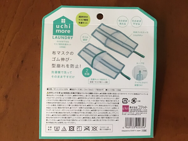 実際に、「そのまま干せるマスク専用洗濯ネット(2枚組)【コジット】」を買ってみました。2枚セットがファミリーには助かりますよね。