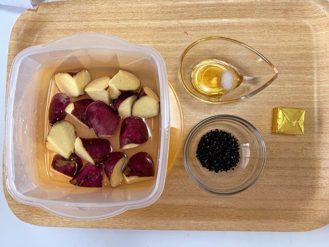 サイゾーウーマン暮らし食べ物てぬキッチンさん【さつまいもの塩バターはちみつ】 暮らし 【あのツイッターレシピ、やってみました】 てぬキッチンさん【さつまいもの塩バターはちみつ】は、失敗知らずの大学芋だ! さっぱりホクホクで子どもに◎ 2020/12/02 18:00 サイゾーウーマン編集部(@cyzowoman) ツイッターレシピ、やってみました 料理がまったくできない主婦の私。料理は夫担当になっていますが、子どもが大きくなるにつれ、私も作らなアカンときに見舞われるように。まずはSNSで人気の簡単レシピから料理にチャレンジ! 今日のレシピ:【さつまいもの塩バターはちみつ】てぬキッチン 『ヒルナンデス』(日本テレビ系)や『めざましどようび』(フジテレビ系)で、手抜きおやつとして多数のレシピが取り上げられてる「てぬキッチン」さん。それらレシピの中で、超簡単そうな【さつまいもの塩バターはちみつ】のレシピを見つけてしまった。さつまいもを使った料理を知らなすぎるため、数々のさつまいもレシピに挑戦中の私だが、今回ははちみつと塩、バターを使うらしい。塩バターはちみつの相性を想像すると、いてもたってもいられなかったので早速作ってみることにした。 材料がこちら。 ・さつまいも 200g ・バター 10g ・はちみつ 大さじ1 ・塩 小さじ1/5 ・白ごま 小さじ1 料理手順はこちら。 1)さつまいもは皮付きのまま乱切りにし、耐熱容器に入れます。 2)キッチンペーパーを被せて、水が9割ほど被るように入れ、ふんわりとラップをして電子レンジ(600w)で3分30秒間加熱します。(フォークをさした時にスッと入るけれど、この後焼くので形は崩れないくらいで少し固めを目安に!) 3)フライパンにバターを熱し、2の水分をきって焼き色をつけます。(バターが焦げないように弱中火で!) 4)はちみつと塩を入れて絡めて、最後に白ゴマを絡めたら完成です。 (てぬキッチンさん公式ブログより引用) 実際に作ってみましょう! さつまいもは皮付きのまま乱切りにし、耐熱容器に入れました。キッチンペーパーはまだ乗せていないのに水を入れてしまいました。以前にも同じような失敗をしてしまったことがある……。 めげずに、バター・はちみつ・塩・白ゴマがなかったので黒ゴマを準備しました。 水はまだ張らないのが本当です(C)サイゾーウーマン さつまいもに、ふんわりとラップをして電子レンジ(600w)で3分30秒間加熱します。 次のページ はちみつと塩を絡めて、最後にゴマを振る 123次のページ 関連記事 『ソレダメ!』レシピ【きのこの炊き込みご飯】作ったら、染み込む旨味に「うわぁ……ウマ……」とつぶやいた!バズレシピ・リュウジさん【至高の豚汁】普通の豚汁と思って作ったら絶句した! 夫も優しく微笑んだ!『ソレダメ!』バズレシピ【鮭の紙包みちゃんちゃん蒸し】作ったら……イケる、めっちゃイケる!! 夕食の主役に百点満点!『ヒルナンデス!』登場レシピ【餃子の皮でとろ~りアップルパイ】作ってみたら……「うんま~~~いっ」! おいしすぎて簡単スイーツレシピ最高作にランクイン!山本ゆりさん「豚バラ油飯」はホントに簡単うまいのか? 料理ダメ主婦が作ってみた結果……これホンマに私が作ったの!?