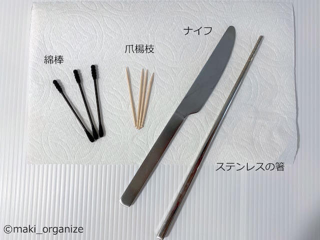 サイゾーウーマン暮らし住まいウタマロクリーナーで大掃除テク 暮らし 伊藤まきの「お片付けSOS」相談! プロに学んだ大人気「ウタマロクリーナー」の5つの使い方! オキシクリーンも重曹もいらない大掃除テクニックを伝授 2020/12/07 19:30 伊藤まき(収納ライター) 「お片付け・お掃除SOS」伊藤まき [道具:4]キッチングッズ 割り箸だと、ボキッと折れます(C)maki_organize 角や隅っこの汚れを落とすには、ステンレス箸が便利。溝や角の汚れは、キッチンペーパーを巻いたカトラリーナイフを使います。ほか、爪楊枝と綿棒も用意しておきます。 [道具:5]断舎離したストッキングやタオル ほこりを落とすために使います(C)maki_organize 「ウタマロクリーナー」を使う前は、ほこりを落としてからが原則。 古いストッキングやもこもこ靴下、フローリング用ドライシートなど毛羽立ちのある素材を使います。古いバスタオルは、玄関や窓掃除の水止めや洗剤の液垂れ止めに。古いタオル(小)は、繊維が付着するので使う場所を選びます。 今回は「ウタマロクリーナー」の使い方と、汚れ落ちの効果を上げる道具についてまとめました。次回は、5年分の「壁の汚れ」に悩むモニターAさん宅に訪問した[ウタマロクリーナー実例編 Before→After]です。 ブレーカーの壁、大丈夫ですか?(C)maki_organize 前のページ12345 伊藤まき(収納ライター) 収納ライター・兼・整理収納アドバイザー1級。クリンネスト2級。おがくず工場に生まれ、ホテル清掃員、国鉄系レストランの厨房、内装会社、デパートの搬入搬出など“家事の土台”を極めた生活を経て、出版社入社ののち独立、現在に至る。モノを手放すほど「幸運」が舞い込むジンクスを何度も体感! 貧乏神と決別した実体験をもって、整理収納の威力をお伝えします。 記事一覧 Instagram:@maki_organize 最終更新:2022/10/24 11:40 重曹もオキシクリーンも使いこなせないんです! 関連記事 「オキシクリーン」使い方! 簡単2ステップ「オキシ漬け」で“油汚れ・焦げ鍋”が衝撃スッキリ今こそ除菌掃除! プロが伝授「オキシクリーン」で汚れゴッソリ、キッチン・浴室丸ごと掃除術年末は「大掃除しない」宣言! やるべきことは「断捨離」だけ、ゴミ出し〆日をゴールに!2018年、平成最後の大掃除でやるべきは「捨てること」! 断捨離を阻む「10の呪縛」とは?“汚キッチン”を片付ける5つのポイント! 皿、保存容器や鍋の「要不要」はコレで見極める 次の記事 伊藤健太郎「自粛は年内で十分」の考えに批判 >