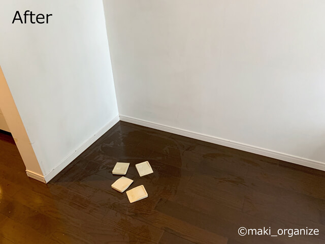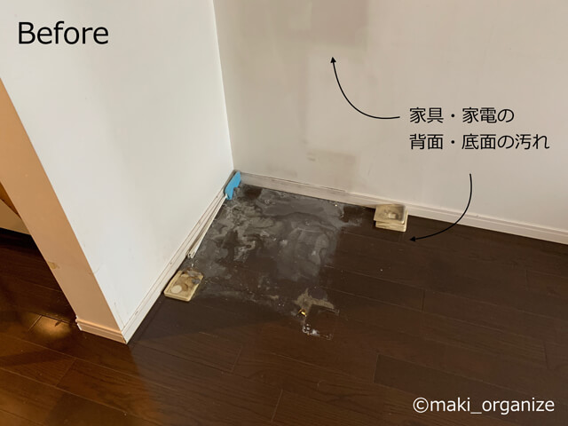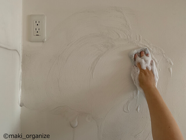 サイゾーウーマン暮らし住まいウタマロクリーナーで実例ビフォー・アフター! 5年放置した壁の「手アカ・黒ずみ・クレヨン・油」が激落ち! 暮らし 伊藤まきの「お片付けSOS」相談! ウタマロクリーナーで実例ビフォー・アフター! 5年放置した壁の「手アカ・黒ずみ・クレヨン・油」が激落ち! 2020/12/11 16:30 伊藤まき(収納ライター) 「お片付け・お掃除SOS」伊藤まき 実例7[Before]冷蔵庫を (C)maki_organize 最後は、筆者宅の冷蔵庫(10年ぶりの買い替え)を動かした後の汚れです。壁紙、巾木、床が埃に覆われていました。 [After] 壁にくすみ感が少し残っていますが、OK範囲(C)maki_organize 掃除の手順はこちら。 [手順1]ウタマロクリーナー+キッチン用スポンジ (C)maki_organize 真っ黒になった壁に、「ウタマロクリーナー」をそのまま吹き付けて、キッチン用スポンジで素早く洗います。黒い汚れが染みにならないよう、すぐ「魔法のタオル」で拭き取る作業を繰り返します。 スポンジとタオルは、繊維が付いていない新品もしくは洗いたての物を使うように。 (C)maki_organize ついでに、フローリングの床も同じように洗います。スポンジ1つで巾木(壁と床の境目)の上まで丸洗いしています。 [完成] (C)maki_organize 壁に付いた汚れが広範囲だとくすみ感が広がります。時間がある方は、歯ブラシとメラミンスポンジでゆっくり丁寧に落としましょう。 【次回は[5種類の神道具で「窓まわり」ぜんぶ掃除!]】 毎日、床に埃が落ちている理由はコレかも!?(C)maki_organize 次回は、5年間放置した「窓まわり」すべてのリセット掃除です。オキシクリーンとウタマロ、ストッキング、魔法のタオル、歯ブラシと少ない道具だけできれいになります! 前のページ12345678 伊藤まき(収納ライター) 収納ライター・兼・整理収納アドバイザー1級。クリンネスト2級。おがくず工場に生まれ、ホテル清掃員、国鉄系レストランの厨房、内装会社、デパートの搬入搬出など“家事の土台”を極めた生活を経て、出版社入社ののち独立、現在に至る。モノを手放すほど「幸運」が舞い込むジンクスを何度も体感! 貧乏神と決別した実体験をもって、整理収納の威力をお伝えします。 記事一覧 Instagram:@maki_organize 最終更新:2020/12/11 16:37 トイレの黒い通気孔、見て見ぬ振りしてきたわ 関連記事 プロに学んだ大人気「ウタマロクリーナー」の5つの使い方! オキシクリーンも重曹もいらない大掃除テクニックを伝授キャンドゥ・ダイソー・IKEAの“買い”アイテム6選! 収納のプロがオススメ「洗濯ネット」活用術 収納のプロが10年試した、100均グッズ「決定版」! 使いにくい「洗面台の鏡裏」スッキリ片付く7アイテムダイソーなら予算10分の1でOK!? 収納のプロが体当たりレポート、「魔法のテープ」不要でここまでできるダイソーのコレ必見! ヒートテック・モコモコ靴下もスッキリ収納、冬のイライラ解決アイテム 次の記事 『バチェ』黄さんに禁断の質問してみた >