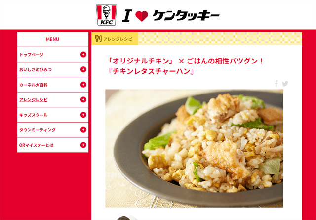 サイゾーウーマン暮らし食べ物ケンタッキー【チキンレタスチャーハン】 暮らし 【あのツイッターレシピ、やってみました】 ケンタッキーフライドチキン【チキンレタスチャーハン】、スパイスきいた大人向けの絶品だった! 2020/12/26 18:00 アウちゃん(ライター) ツイッターレシピ、やってみました 料理がまったくできない主婦の私。料理は夫担当になっていますが、子どもが大きくなるにつれ、私も作らなアカンときに見舞われるように。まずはSNSで人気の簡単レシピから料理にチャレンジ! 今日のレシピ:【チキンレタスチャーハン】 ケンタッキーフライドチキン公式サイトより 材料はこちら。 オリジナルチキン…2ピース レタス…4~5枚 油…大さじ1 卵…2個 ごはん…2杯 しょうゆ…小さじ1 塩コショウ…少々 作り方はこちら。 「オリジナルチキン」は骨を除いてほぐす。レタスはざく切りに。 熱したフライパンに油をひき、溶き卵をさっと炒める。ごはんを加え炒め合わせたら、しょうゆを回し入れ、塩コショウで味を整える。 味付け後、「オリジナルチキン」とレタスを加え、さっと混ぜる。 (レシピはケンタッキーフライドチキン公式サイトより) 実際に作ってみましょう! レタスをざく切りにしました。卵とフライドチキンを用意して準備完了です。この後フライドチキンは骨をのぞいてほぐしました。 材料(C)サイゾーウーマン 次のページ レタスはシャキシャキの食感を残す 123次のページ 関連記事 『家事ヤロウ!!!』【ケンタッキーフライドチキン炊き込みご飯】、このうまさ誰が考えたの!? 「ケンタの正しい食べ方」の概念が変わるぞ!つくりおき食堂まりえさん【ケンタッキーのコールスロー再現レシピ】、子どもの胃袋を掴む我が家の大人気メニューに決定!山本ゆりさん【クッキー&クリームレアチーズ】、マックフルーリーを再現! 超簡単なのに本物以上の濃厚さがスゴい!バズレシピ【最強の酒泥棒レンコン】作ったら、マジで酒が止まらず「おかわりでもう一回」使ってしまった!『家事ヤロウ!!!』【コンポタパン】、流れ出るクリーミーさが究極!! なめらかなソースとパンがジュワー