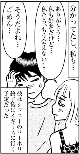 サイゾーウーマンカルチャーマンガ26歳男子からの告白に涙 カルチャー まんが『オバサンと言われても結婚したい!』21話 【アラフォー婚活ルポ】26歳男子からの告白に涙……好きだけど、私たちもう会えないし! 2021/02/14 13:30 白戸ミフル(マンガ家) ――合コン歴20年以上、累計回数2,500回以上、30代なかばに乳がんで闘病するも、現在は絶賛婚活中のライター・漫画家の白戸ミフルが「アラフォー婚活」の実体験をお届けします! アラフォー中の結婚は成就するのか……!? ※めちゃコミックで独占配信中『オバサンと言われても結婚したい!~元美人がガンと闘病しながら婚活した話~』の続編です! 【前回まで】 海外婚活としていろんな国を回っていた中、シドニーで26歳のかわいい日本人を発見! しかし彼(ショウくん)は、商社を2年で辞めて、いまはワーホリ中の身分。しかも出張ホストに興味があるという典型的なダメ男……。1週間連日のように2人で楽しく過ごしていたけど、明日は私がシドニーを離れてハワイへ旅立つ日。その夜、ショウくんが「実は…僕…」と神妙な感じで切り出してきた! 第21話『恥ずかしい、これは嫉妬だ』 次のページ ふと疑問に… 1234次のページ 関連記事 【アラフォー婚活ルポ】ヤバいキュンときた……絶対ダメ男なのに!! 26歳ワーホリ男とデートの巻【アラフォー婚活ルポ】41歳婚活女、27歳の典型的ダメ男と……この出会いは吉か凶か!?【アラフォー婚活ルポ】その価値観、わかり合える気がしない! 41歳の婚活にいよいよ不安増大……【アラフォー婚活ルポ】これが日本人は欧米でモテるってヤツ!? 41歳、婚活で手応えアリ……!?【アラフォー婚活ルポ】40歳無職、あっという間に41歳へ! 出会ったのは既婚オジサンのみ…… その他の作品を読む