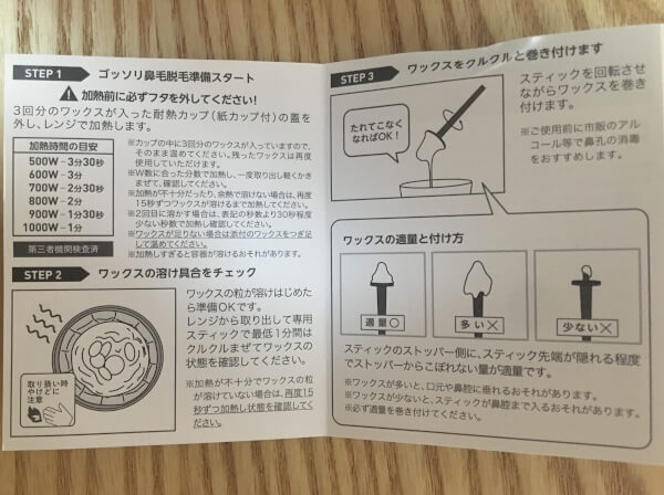 サイゾーウーマン暮らし100均・雑貨鼻毛がとんでもない量抜ける「GOSSO」 暮らし トレンド商品ガチレビュー 鼻毛が「とんでもない量抜ける」と話題の「GOSSO」、やってみた! がっつり抜ける興奮ポイントと注意点 2021/03/05 14:30 tukki(ライター) トレンド 「GOSSO」の使用してみました! 早速使用していきたいと思います! まずはワックスが入っている耐熱容器の蓋を開けます。 ワックスは粒状(C)サイゾーウーマン 説明書にある規定時間通り、電子レンジで温めます。 わかりやすい説明書(C)サイゾーウーマン なかなか粒がとける状態にならず、私は規定時間より1分程追加で温めました。溶けたら専用スティックで回してかき混ぜます。 溶けたワックス(C)サイゾーウーマン すぐにしっかりとかき混ぜることがポイントです! 私はかき混ぜるのが遅すぎて1回固めてしまいました。 ワックスが溶けたら、適量をスティックに付けます。 ワックスをこのように取る(C)サイゾーウーマン 次のページ 閲覧注意!? 鼻に挿入する写真が出てきます! 前のページ1234次のページ 関連記事 「洗濯マグちゃん」だけで、ホントに汚れが落ちるのか検証レビュー! しょうゆ他シミ汚れでテストした驚きの結果は……話題のコスメ「The Ordinary」を試してみた! 人気「血みどろピーリング」は要注意!? 肌荒れ・皮むけの結果にメルカリ商品の発送手続きがわずか1分で! ローソンの荷物発送サービス「スマリボックス」が簡単&時短で超便利温泉の専門家が選ぶ「入浴剤」ランキングベスト5! コンビニ・ドラストで買える“本格温泉”今冬1位は!?大阪・激安スーパー「玉手」初体験ルポ! チラシの「1円」商品、エコバッグ他1,000円でこんなに買えた!
