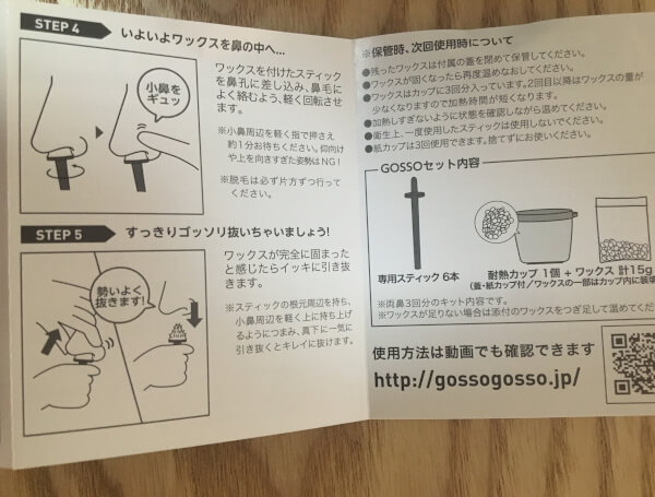 サイゾーウーマン暮らし100均・雑貨鼻毛がとんでもない量抜ける「GOSSO」 暮らし トレンド商品ガチレビュー 鼻毛が「とんでもない量抜ける」と話題の「GOSSO」、やってみた! がっつり抜ける興奮ポイントと注意点 2021/03/05 14:30 tukki(ライター) トレンド 閲覧注意!? 鼻に挿入する写真が出てきます! そしてワックスが固まる前に鼻の穴に入れます! YouTubeなどでは、両方の鼻に入れているのも多いですが、必ず片方ずつやるように説明書にありますので注意して下さい! ズボッっと(C)サイゾーウーマン 少し熱いです! しかし、何回か試した結果、入れた時に少し熱いと感じる位が一番効果がありました。 小鼻をギュギュッと押しましょう(C)サイゾーウーマン 説明書にあるように鼻を押して、ワックスにしっかりと鼻毛を絡めます。ほんのりバニラのような甘い香りがします。 約1分待ってからイッキに抜きます。 さて……どれくらい抜けたのでしょうか? 次のページ 1分後……こんなに抜けた! 前のページ1234次のページ 関連記事 「洗濯マグちゃん」だけで、ホントに汚れが落ちるのか検証レビュー! しょうゆ他シミ汚れでテストした驚きの結果は……話題のコスメ「The Ordinary」を試してみた! 人気「血みどろピーリング」は要注意!? 肌荒れ・皮むけの結果にメルカリ商品の発送手続きがわずか1分で! ローソンの荷物発送サービス「スマリボックス」が簡単&時短で超便利温泉の専門家が選ぶ「入浴剤」ランキングベスト5! コンビニ・ドラストで買える“本格温泉”今冬1位は!?大阪・激安スーパー「玉手」初体験ルポ! チラシの「1円」商品、エコバッグ他1,000円でこんなに買えた!