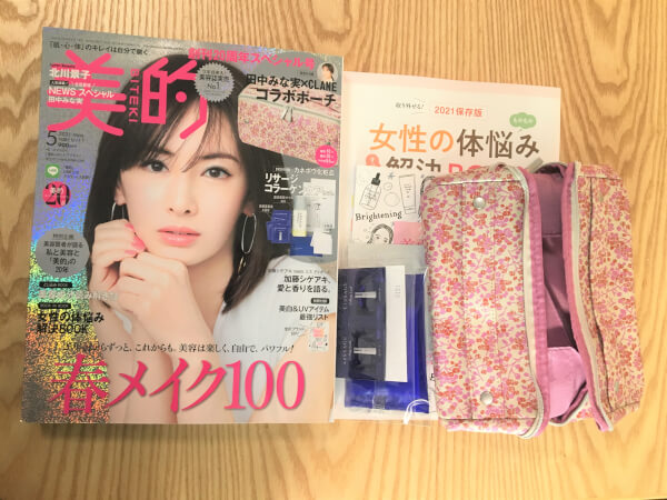 サイゾーウーマン暮らし100均・雑貨「美的」5月号付録レビュー 暮らし 【雑誌付録レビュー】 【付録レビュー】「美的」5月号、田中みな実×CLANEコラボのポーチが実用性抜群!「付録とは思えない」「最高!」と大絶賛の声【女性誌】 2021/04/10 12:30 tukki(ライター) 雑誌付録(ふろく)レビュー いまや付録で雑誌を選ぶのは当たり前。毎月魅力的な付録が登場し、どれにしようか迷いますよね。そこで、付録を実際に手にして、見た目や使い勝手を徹底レビューします! 今月の付録:「美的」2021年5月号、「創刊20周年スペシャル号!田中みな実×CLANEコラボポーチリサージコラーゲンケアセット」 デザイン:★★★★★(大人可愛いおしゃれな美的限定小花柄♪) クオリティ:★★★★★(付録とは思えない大きさと高級感☆) 使い勝手:★★★★★(取り外し可能な仕切りが便利、使用方法は∞!) 「美的」(小学館)5月号(C)サイゾーウーマン 「美的」(小学館)5月号の付録は、以下の豪華4点! ■田中みな実×CLANE×美的コラボポーチ ■カネボウ化粧品 リサージコラーゲンケアセット ・「リサージ スキンメインテナイザー<MIII> [医薬部外品](サンプルパウチ2回分) ・「リサージ コラゲリードa[医薬部外品]」(サンプルパウチ4回分) ・「リサージ オイルインパクト」(ミニボトル4ml) ・コットン ■別冊付録「2021美白&UVアイテム最強LIST」 ■ブックインブック「女性の体悩み解決BOOK」 「創刊20周年スペシャル号」ということで、本誌はなんと2.5㎝の厚みがあり、ページ数は約600ページ、重さはなんと1.9キロという大ボリューム。メイン付録は、トレンドを押さえた、飽きのこないデザインがおしゃれ女子の間で人気のファッションブランド「CLANE(クラネ)」と、「美的」でもおなじみの美のカリスマ・田中みな実さんがトリプルコラボしたポーチです☆ Twitter上でも、「巷をざわつかせてる美的の重さと厚さ……内容は素晴らしい!」「付録目的で購入しました☆」「付録とは思えないしっかりとした作り」「最高に使いやすい!」と話題になっていました。 早速、大注目のポーチから詳しくを見ていきましょう! 田中みな実×CLANE×美的コラボポーチ(C)サイゾーウーマン 【素材】:塩化ビニル樹脂、ポリエステル 【サイズ】:縦10×横20×横9.5cm 付録のポーチとは思えないしっかりとした作りで、チープさは感じられません。 ピンク×赤の小花柄は「美的」だけの限定柄(C)サイゾーウーマン ピンク×赤の小花柄は、田中みな実さんとCLANEのコラボファッションアイテムにも使われているオリジナルの花柄を、「美的」のためにアレンジしたものだそう。春らしい柔らかい色使いがとってもキュートですよね。 持ち手も大きいので開閉が楽チン♪(C)サイゾーウーマン ファスナーはマットな質感のシルバーになっているので、甘さを引き締め、上品かつ大人っぽい印象になっています。 ポケットは全部で3つ(C)サイゾーウーマン また、ダブルファスナー式なので、180度ガバッと口が開くので、物の出し入れもやすそう。内側は、ツルツルとしたダスティピンクのポリエステル生地が使われており、水漏れにも強そう。ポケットは、大きいものが1つ、小さいものが2つ付いていますが、マチはないため、厚みがあるものは避けたほうがよさそうです。 トリプルコラボのタグも(C)サイゾーウーマン なお、ポーチの片側の側面には、トリプルコラボであることを表す「Minami Tanaka CLANE BITEKI」のタグが付いていました。 取り外し可能な仕切りもついているので、さまざまなアイテムの収納に便利(C)サイゾーウーマン また、このポーチには、マジックテープ式の仕切りがついており、自由に取り外しが可能。 持ち手もついているので、持ち運びも可能(C)サイゾーウーマン 両サイドには持ち手も付いているため開閉がしやすく、口を広げた状態でも楽に持ち運びができますよ! 次のページ 可愛いかつ大容量で実用性抜群! 使用用途は無限大! 12次のページ 関連記事 【付録レビュー】「MonoMax」4月号、人気アウトドアブランド・ホグロフスの3Wayバッグが普段使いにも仕事にも大活躍【情報誌】【付録レビュー】「Gina 2021 Spring」、大人が使いやすい全8色! 「Ungrid」ネイル&マスカラセットで春メイクは完璧【女性誌】【付録レビュー】「&Rosy」4月号、TOCCAのミニ加湿器が「付録とは思えない豪華さ」! 見た目以上の実力に大満足◎【女性誌】【付録レビュー】「リンネル」4月号、ミッフィークッション“抱き心地バツグン”で大人気! 完売続出で「10店以上はしご」の声も【女性誌】【付録レビュー】「JELLY」4月号、「これで880円は強い」とSNS大絶賛! EMODA6色パレット2個セット、全色試してみた!【女性誌】
