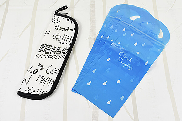 サイゾーウーマン暮らし100均・雑貨ダイソーVSセリア“折りたたみ傘グッズ対決” 暮らし 【100均ずぼらシュラン】 【ダイソーVSセリア】100均「折りたたみ傘グッズ」対決! 折りたたみ傘のストレスにさよなら!? 2021/04/06 13:00 ずぼら均子(ライター) セリアダイソー100均 天気の変化に備えて、折りたたみ傘は常に持ち歩いておきたいもの。しかし濡れた折りたたみ傘の保管に毎回困っているという方も多いのではないでしょうか? そこで今回はダイソーとセリアの折りたたみ傘グッズを比較。実際に手に取って、どんな商品なのかチェックしていきましょう。 商品を並べたところ(C)サイゾーウーマン ふわふわのマイクロファイバー生地がうれしい! 「折りたたみ傘用収納袋(ロゴ)」(ダイソー) 便利度:★★★☆☆(折りたたみ傘を濡れたまま入れられる) コスパ:★★★★☆(機能性が高い) 見た目:★★★★☆(ポップなデザインがキュート!) 商品パッケージ(C)サイゾーウーマン まず最初に、ダイソーで購入してきた「折りたたみ傘用収納袋(ロゴ)」をご紹介。雨の日でも気分が上がりそうな、ポップなデザインになっています。 商品の内側(C)サイゾーウーマン 内側は水を良く吸収するマイクロファイバー生地で、肌触りはふわふわ。マイクロファイバー生地が水を吸ってくれるため、濡れた傘をそのまま入れても大丈夫そうです。また外側は、水を弾く撥水加工。試しに蛇口の水を直接かけてみましたが、中に染み込まずにしっかり防水してくれました。 傘を入れてみたところ(C)サイゾーウーマン 実際に折りたたみ傘を入れてみたところ、持ち手の部分がちょうど出る大きさで取り出しが楽ちん。折りたたみ傘に元々ついているカバーと入れ替えて使用するといいかもしれませんね。 次のページ ジップ付きで開け閉めが簡単! 使い捨てタイプの「折りたたみ傘ジップケース」(セリア) 12次のページ 関連記事 【ダイソーVSセリア】100均「台所グッズ」他全4アイテム【週間まとめ3/29~4/2】【ダイソーVSセリア】100均「鍋敷き」対決! 意外と持っていない便利アイテムでお悩みを解決!?【ダイソーVSセリア】100均「台所グッズ」対決! 新生活を始める人におすすめのキッチンアイテム収納のプロが選ぶのは、100均・無印・ニトリより「ナカバヤシ」のA4ファイルボックス! 自宅での使用例を公開【ダイソーVSセリア】100均「ウイルス対策グッズ」他全4アイテム【週間まとめ3/22~3/27】