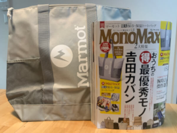 サイゾーウーマン暮らし100均・雑貨「MonoMax」5月号付録レビュー 暮らし 【雑誌付録レビュー】 【付録レビュー】「MonoMax」5月号、アウトドアブランドMarmotの特大トートが保冷・保温の両対応! 普段使いもできてかなりの万能品【情報誌】 2021/04/14 14:00 amimeko(ライター) 雑誌付録(ふろく)レビュー いまや付録で雑誌を選ぶのは当たり前。毎月魅力的な付録が登場し、どれにしようか迷いますよね。そこで、付録を実際に手にして、見た目や使い勝手を徹底レビューします! 今月の付録:「MonoMax」2021年5月号「アウトドアブランド「Marmot」特大 保冷・保温トートバッグ」 デザイン:★★★★☆(グレーを基調としたシンプルなデザイン◎) クオリティ:★★★★☆(縫製が綺麗☆) 使い勝手:★★★★★(いろんなシーンで使える♪) 「MonoMax」(宝島社)5月号(C)サイゾーウーマン 「MonoMax」(宝島社)5月号の付録は、アメリカのアウトドアブランド「Marmot(マーモット)」から、特別付録として「特大保冷・保温トートバッグ」が登場です! サイズ:〈上部〉W47.5/〈底部〉33×H37×〈マチ〉14.5cm 耐荷重:(約)10kg 素材:ポリエステル裏PVC貼り、ポリエステル 見るからに、たくさん物が入りそうなこのバッグ。早速、気になるポイントやこだわりポイントを紹介していきますよ~! 「Marmot 特大保冷・保温トートバッグ」(C)サイゾーウーマン トートバッグは折り畳まれた状態で入っているのですが、広げると想像していたよりも大きく、驚きました。 シルバーグレーのポリエステル生地に、白字でブランドロゴがプリントされていて、とてもお洒落♪ 落ち着いた色合いとシンプルなデザインなので、シーンを選ばずに使用できますよ。 長めの引手がうれしい!(C)サイゾーウーマン また、ファスナー付きなのもうれしいポイント。さらに、取っ手部分には、アウトドアの便利アイテムとしておなじみの、頑丈で耐荷重に優れたパラコードの引手も付いているので、デザイン性が高いのはもちろん、バッグの開閉も楽に行えますよ! 次のページ 2Lペットボトルが5本も入る大容量♪ 12次のページ 関連記事 【付録レビュー】「美的」5月号、田中みな実×CLANEコラボのポーチが実用性抜群!「付録とは思えない」「最高!」と大絶賛の声【女性誌】【付録レビュー】「リンネル」5月号、ひつじのショーン×マーモットの2WAYエコバッグ&サコッシュがお買い物時に大活躍!【女性誌】【付録レビュー】「&Rosy」5月号、メイクのプロも太鼓判! RMKコスメバッグが見た目以上の収納力で万能【女性誌】【付録レビュー】「MonoMax」4月号、人気アウトドアブランド・ホグロフスの3Wayバッグが普段使いにも仕事にも大活躍【情報誌】【付録レビュー】「Gina 2021 Spring」、大人が使いやすい全8色! 「Ungrid」ネイル&マスカラセットで春メイクは完璧【女性誌】