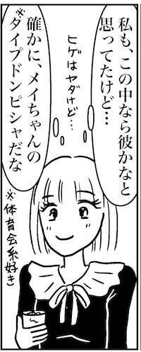 サイゾーウーマンカルチャーマンガ婚活女子の報告は事件の前触れ!? カルチャー まんが『オバサンと言われても結婚したい!』35話 【アラフォー婚活ルポ】「実は付き合うことになりました」婚活女子の報告は事件の前触れ!? 2021/04/14 13:30 白戸ミフル(マンガ家) オバサンと言われても結婚したい! メイちゃんのタイプドンピシャ! 次のページ カップル誕生! 前のページ1234次のページ 関連記事 【アラフォー婚活ルポ】熟女の魅力は謙虚なところ? むしろワガママなんだけど……【アラフォー婚活まんが】42歳、“熟女好き”27歳と過ごす夜……え、全身ツルツル!?【アラフォー婚活まんが】年収2000万円の“熟女大好き”27歳と、いきなり温泉旅行!【アラフォー婚活まんが】感激の夜が「キモい」結果に!? 初デートではそれはない!【アラフォー婚活まんが】41歳、プロポーズを拒否! 借金500万円の男についにブチ切れ!! その他の作品を読む