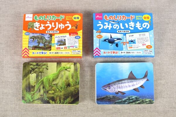 サイゾーウーマン暮らし100均・雑貨大人も勉強になるダイソーの“学べるカード” 暮らし 【100均ずぼらシュラン】 【100均レビュー】ダイソー「学べるカード」、親子で楽しめて子どもと一緒に生きもの博士に!? 2021/06/08 14:05 ずぼら均子(ライター) ダイソー100均 親子で楽しく学べるアイテムが豊富な100円ショップ。種類が多いからこそどんな商品を選べばいいか迷ってしまいますよね。そこで今回は、ダイソーで展開している「ものしりカードシリーズ」から2商品をセレクト。100均とは思えないクオリティーの知育グッズをじっくりチェックしていきましょう。 商品を並べたところ(C)サイゾーウーマン リアルな恐竜のイラストがかっこいい! ダイソーの「ものしりカード きょうりゅう」 便利度:★★★★☆(恐竜図鑑として使える!) コスパ:★★★★☆(100円なのにしっかりとした紙質) 面白さ:★★★★★(リアルなイラストにドキドキ) 商品パッケージ(C)サイゾーウーマン まず紹介するのは、ダイソーの「ものしりカード きょうりゅう」です。絶滅した今もなお、幅広い世代に人気がある恐竜。そんな恐竜たちの名前や特徴を、イラストつきで勉強できます。 商品パッケージとカードの表(C)サイゾーウーマン カードの表には、1枚1枚に恐竜のイラストが。絵がリアルなので、大昔に生きていた彼らに思いを馳せながら楽しむことができます。28種類もの恐竜について学べるから、お気に入りの恐竜を見つけられるかも。 カードの表と裏(C)サイゾーウーマン カードの裏側には、それぞれの生態や生きていた時代などが詳しく記載されています。ラインナップが豊富なため、恐竜図鑑として1つ持っていてもいいかもしれません。 次のページ 親子で生きもの博士になれるかも! ダイソーの「ものしりカード うみのいきもの」 12次のページ 関連記事 ダイソーの「IQおもちゃ」対決! 楽しいだけでなく遊びながら脳を活性化【ダイソーVSセリア】100均「置物系おもちゃ」対決! “何が出るかはお楽しみ”で面白い!「100均グッズを使いこなせない」収納の悩みを解決! 玄関の片付けビフォー・アフター4連発【ダイソーVSセリア】100均「進化系懐かしおもちゃ」他全6アイテム【週間まとめ5/17~5/28】【ダイソーVSセリア】100均「進化系懐かしおもちゃ」比較! 令和世代もおもしろくてクセになる!?